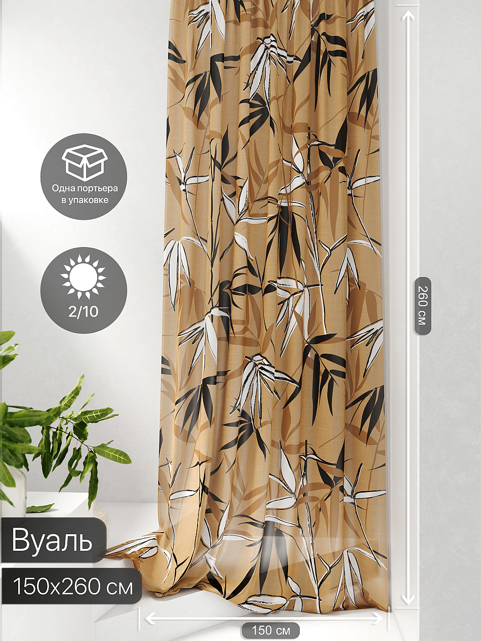 Тюль замечательный, очень качественно пошит. Вуаль плотная, швы хорошо обработаны. Расцветка яркая, сочная. Ярче чем на фото. Спасибо производителю и компании Wildberries за доставку -