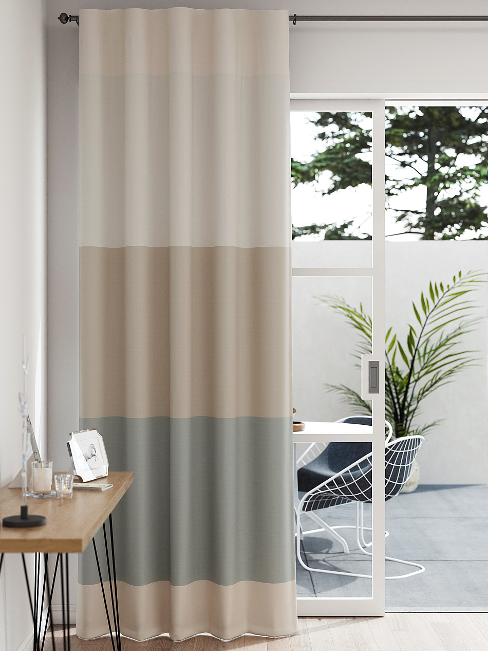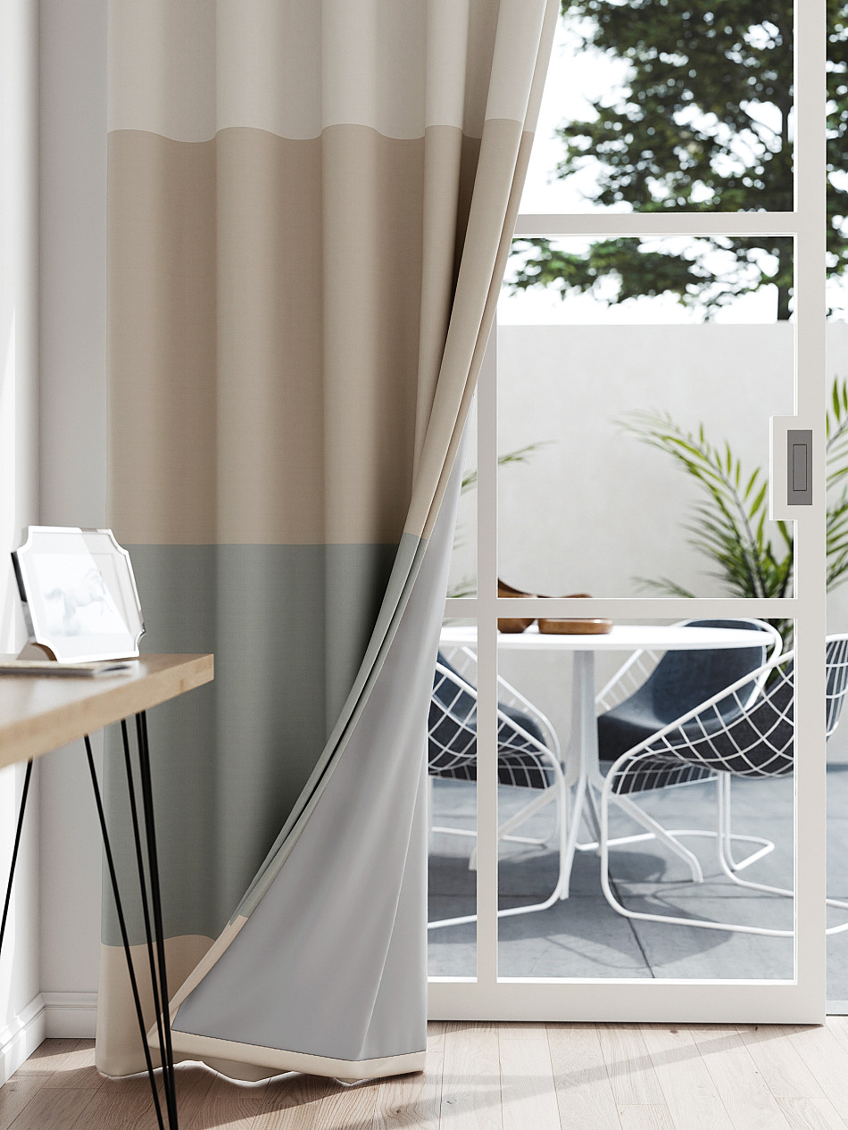 Портьера из плотной ткани (Блэкаут) сатинового плетения. Ткань затемняет помещение, обладает тепло - и звукоизоляцией. Блэкаут прекрасно драпируется, образуя округлые складки. Шторы станут удачным решением при оформлении любого помещения. Ткань неприхотлива в уходе, возможна деликатная стирка.