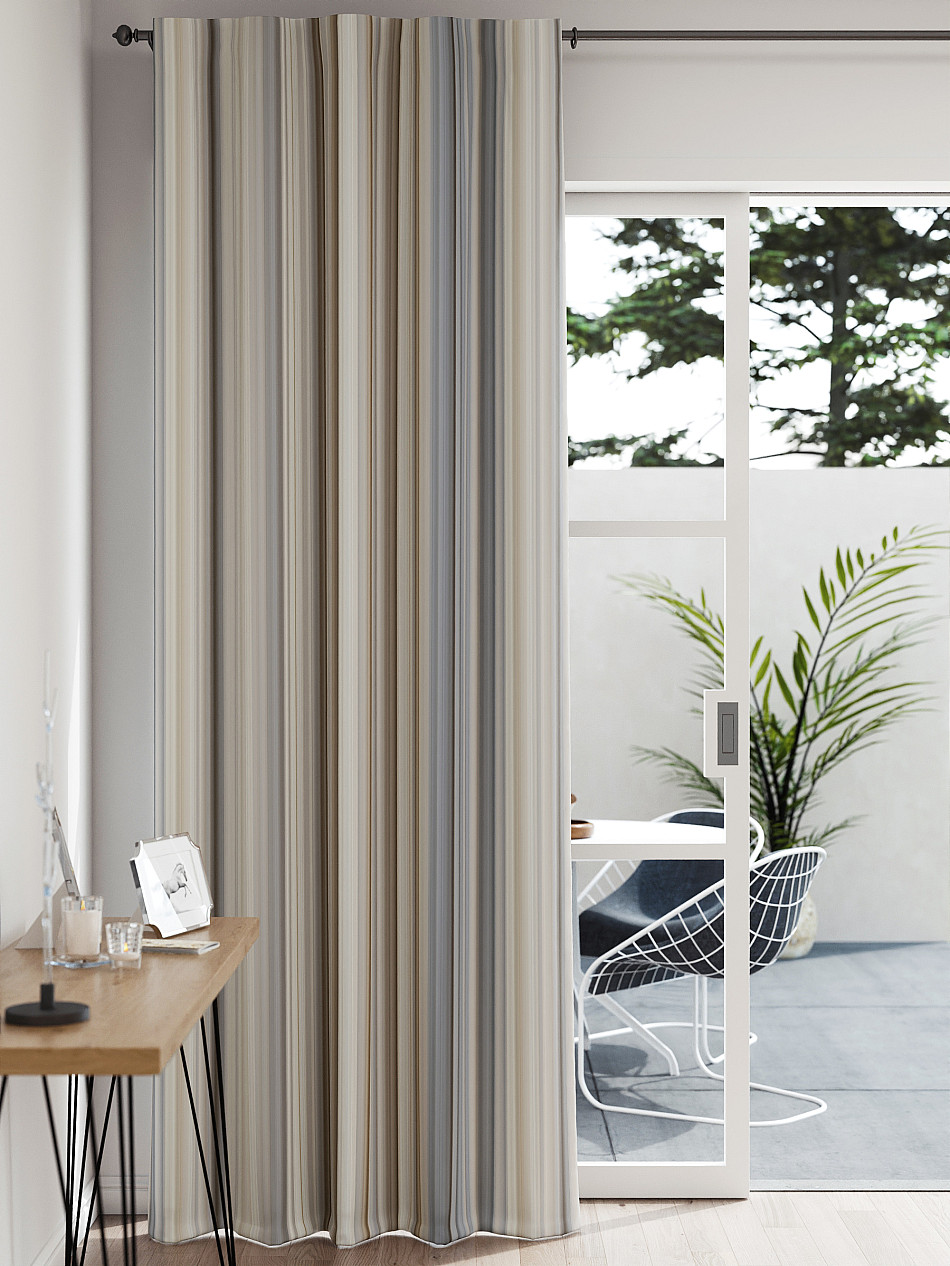 Портьера из плотной ткани (Блэкаут) сатинового плетения. Ткань затемняет помещение, обладает тепло - и звукоизоляцией. Блэкаут прекрасно драпируется, образуя округлые складки. Шторы станут удачным решением при оформлении любого помещения. Ткань неприхотлива в уходе, возможна деликатная стирка.