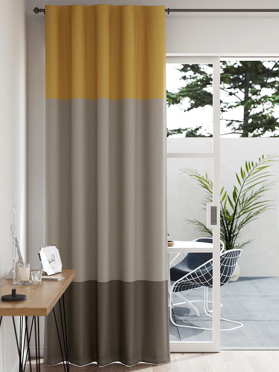 Портьера из плотной ткани (Блэкаут) сатинового плетения. Ткань затемняет помещение, обладает тепло - и звукоизоляцией. Блэкаут прекрасно драпируется, образуя округлые складки. Шторы станут удачным решением при оформлении любого помещения. Ткань неприхотлива в уходе, возможна деликатная стирка.