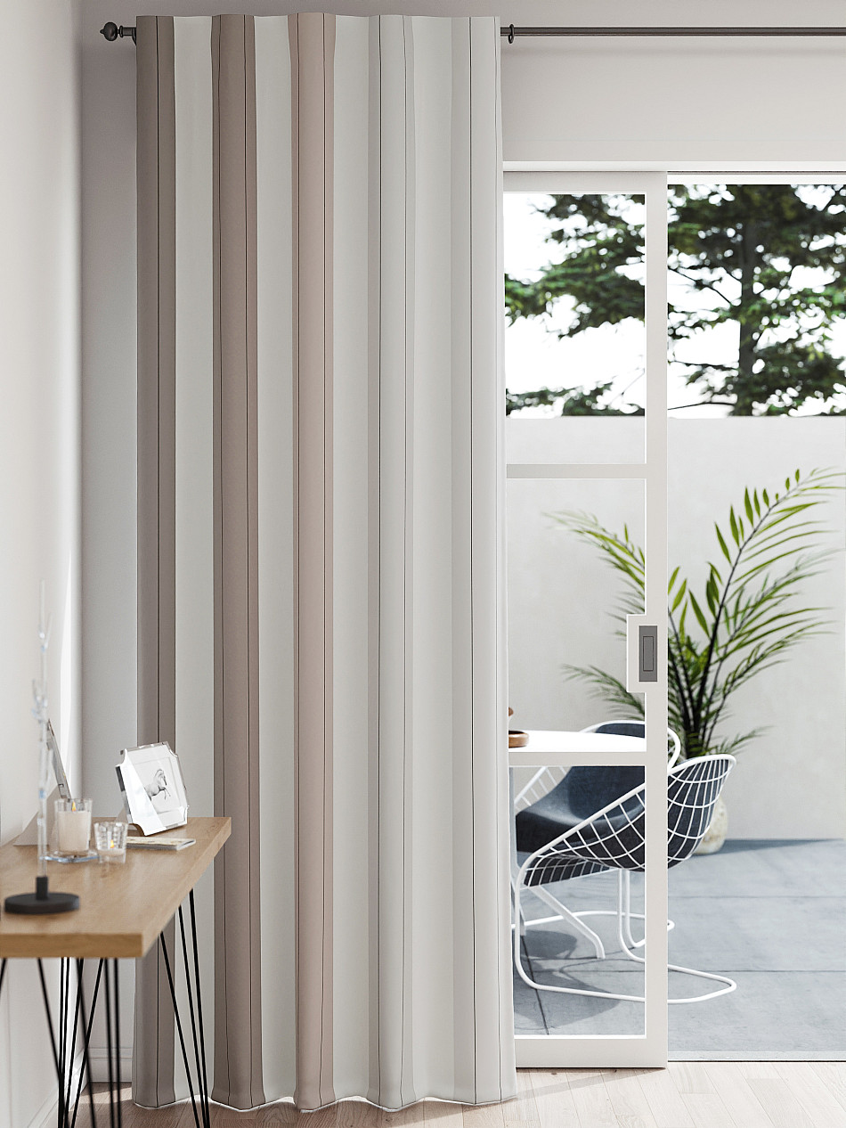 Портьера из плотной ткани (Блэкаут) сатинового плетения. Ткань затемняет помещение, обладает тепло - и звукоизоляцией. Блэкаут прекрасно драпируется, образуя округлые складки. Шторы станут удачным решением при оформлении любого помещения. Ткань неприхотлива в уходе, возможна деликатная стирка.
