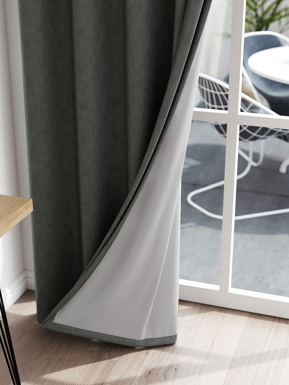 Шторы из ткани блэкаут надежно защищают комнату от нежелательного света. Шторы препятствуют проникновению солнечных лучей на 9 из 10. Ткань блэкаут обеспечивает хорошее затенение благодаря особому трехслойному составу. Кроме затенения, шторы блэкаут, благодаря плотности, делают менее слышимым уличный шум и препятствуют сквознякам. Шторы просты в уходе, не линяют при стирке и не мнутся.