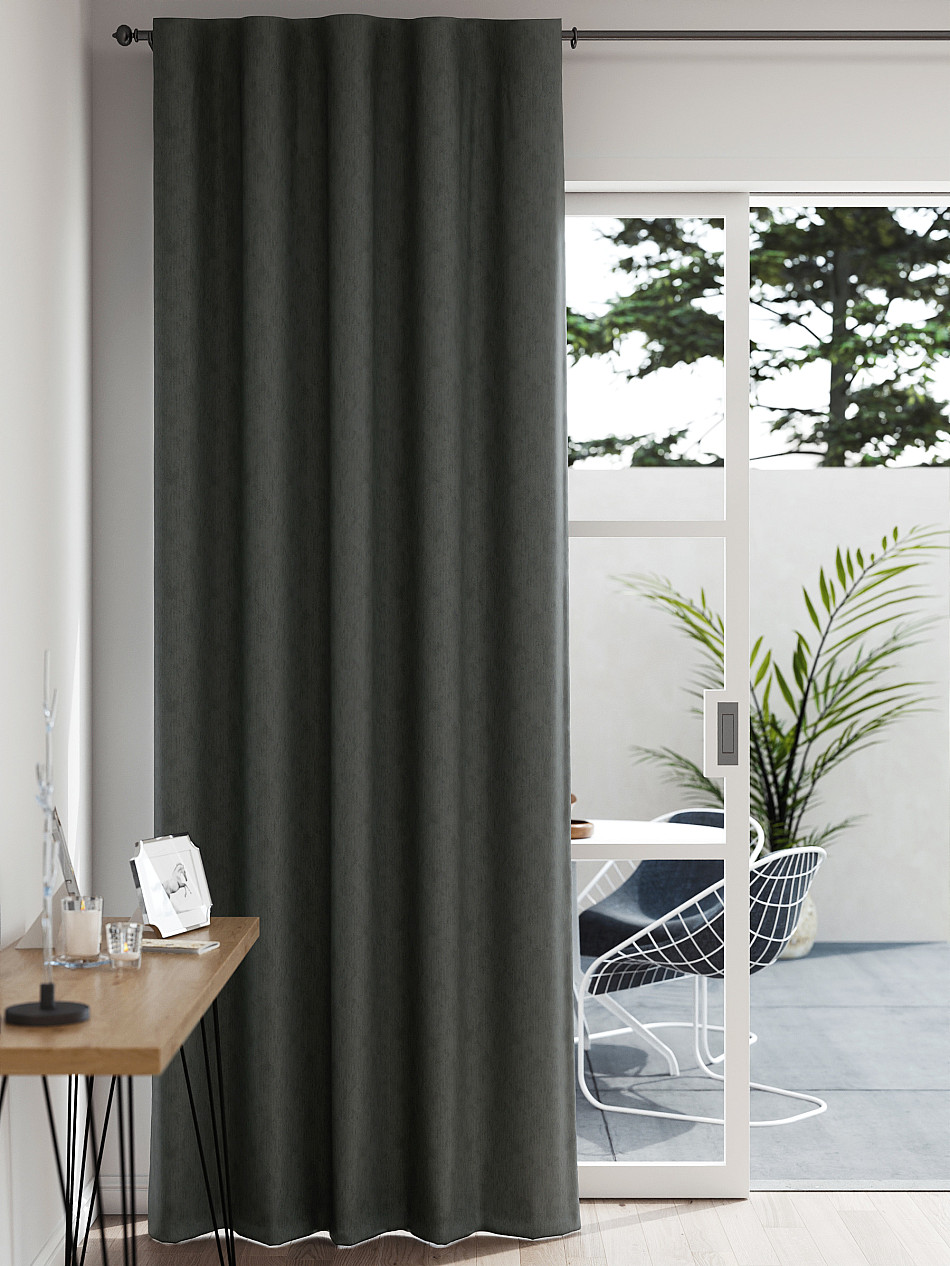 Портьера из плотной ткани (Блэкаут) сатинового плетения. Ткань затемняет помещение, обладает тепло - и звукоизоляцией. Блэкаут прекрасно драпируется, образуя округлые складки. Шторы станут удачным решением при оформлении любого помещения. Ткань неприхотлива в уходе, возможна деликатная стирка.