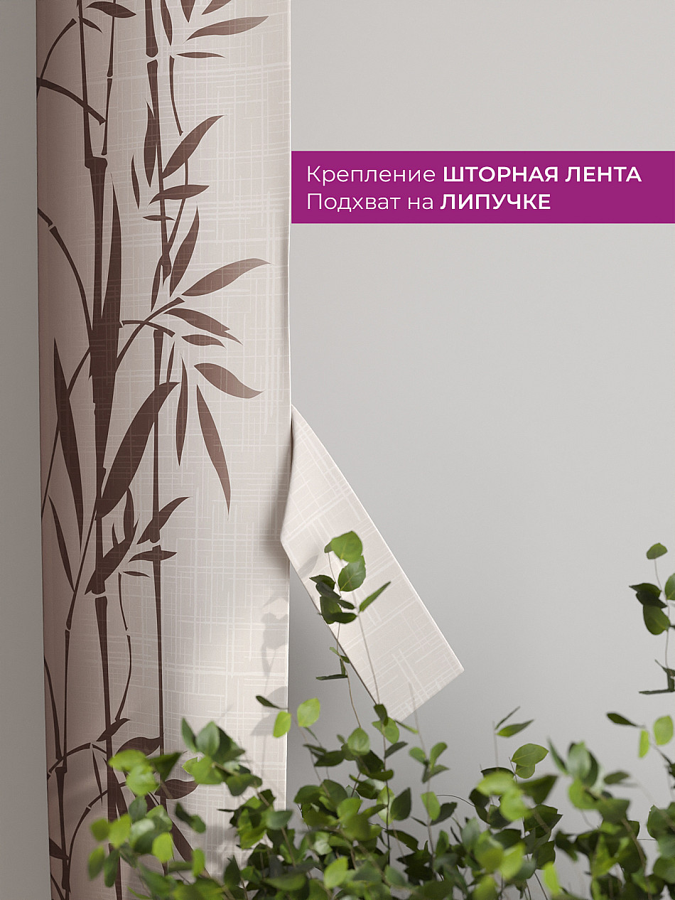 Комплект готов к развешиванию. По верхнему краю пристрочена шторная лента 6 см, с 2-мя рядами петель под крючки, что позволяет регулировать высоту. Одновременно имеется кулиска (карман для штанги), в которую можно продеть карниз любого диаметра.