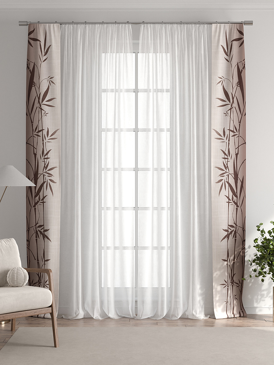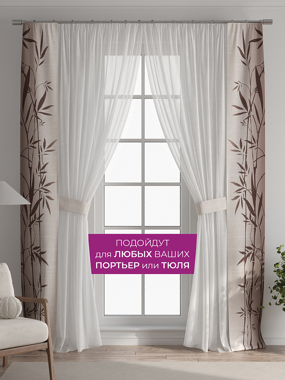 В комплект входят две узкие шторы шириной всего 38 см и длиной 260 см., которые навешиваются рядом с вашими занавесками или тюлем не утяжеляя вид окна и не препятствуя попаданию солнечного света в комнату. При этом выполняют роль подхватов и добавляют акцент в интерьер.