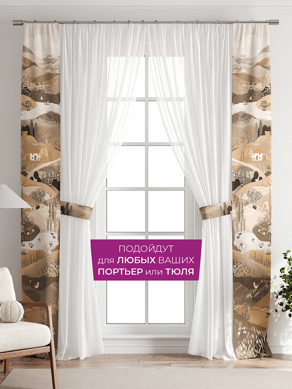 Панели с вшитыми подхватами подходят как для лёгкого тюля, так и для плотных портьер. Дополните тюль на кухне, шторы в гостиной, занавески в детской, портьеры в спальне и ваш интерьер заиграет новыми красками без серьезных вложений, а благодаря тому, что подхват пришит к нашим шторам - вам не нужно сверлить стены, устанавливать крючки или портить оконные рамы. Подхват всегда в нужном месте, не теряется, не смещается и обеспечивает аккуратную фиксацию.