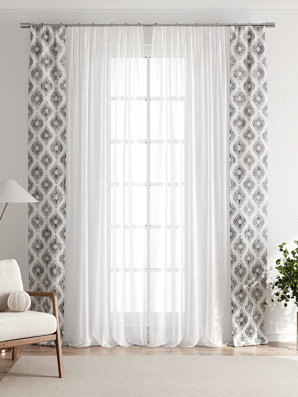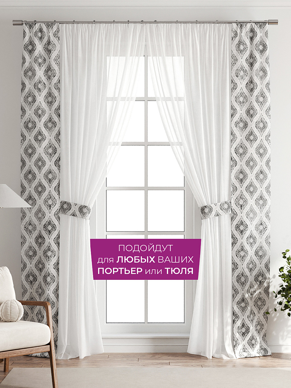 Если у вас уже есть портьеры или тюль, добавление наших узких штор с подхватами — самый быстрый, простой и доступный способ обновить интерьер, не меняя основной текстиль, а значит без лишних затрат.