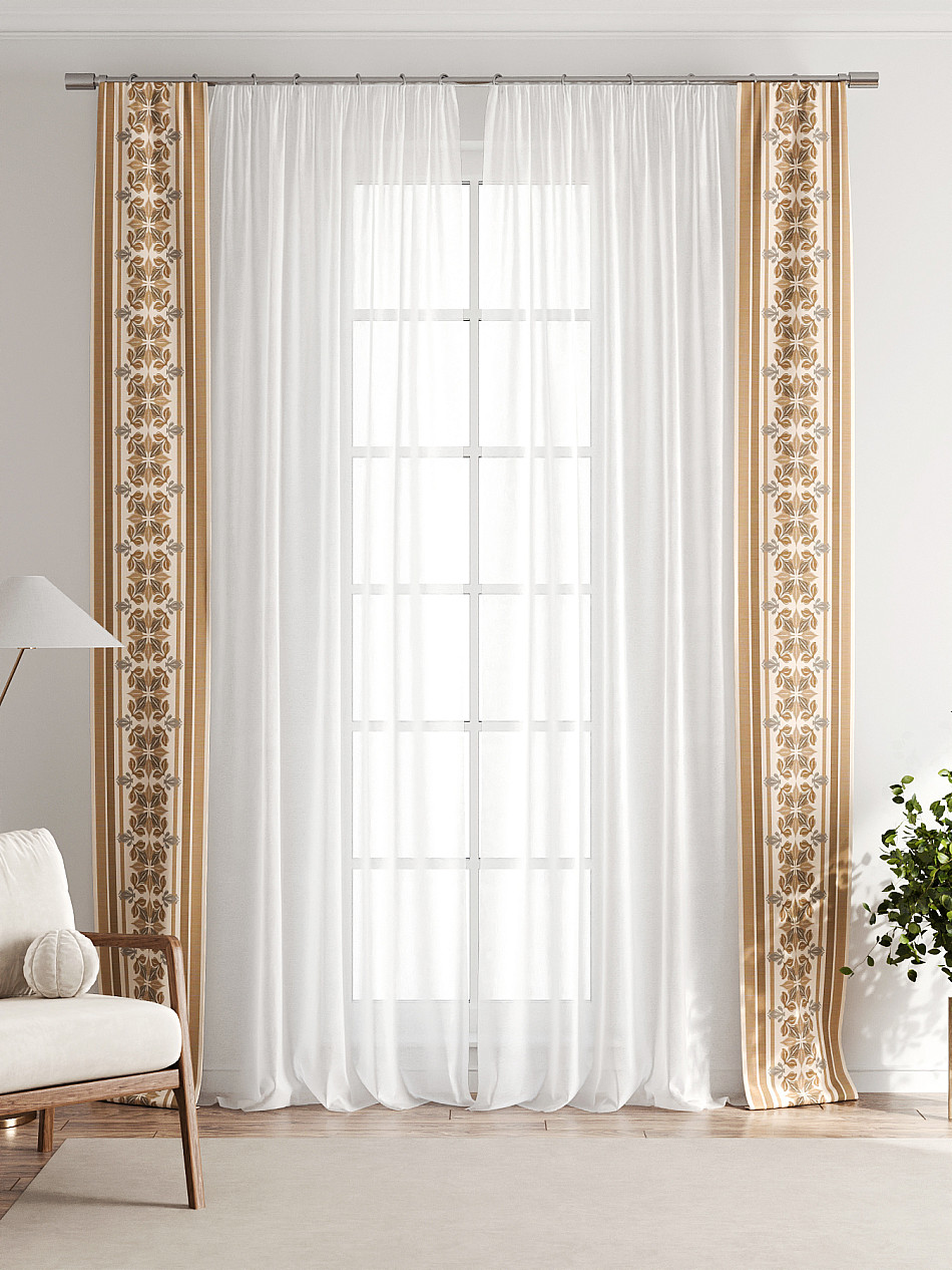 В комплект входят две узкие шторы шириной всего 38 см и длиной 260 см., которые навешиваются рядом с вашими занавесками или тюлем не утяжеляя вид окна и не препятствуя попаданию солнечного света в комнату. При этом выполняют роль подхватов и добавляют акцент в интерьер.
