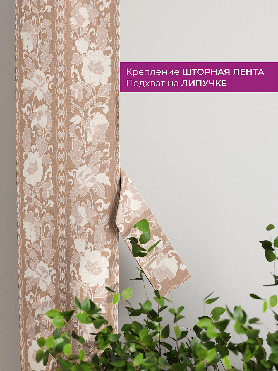 Комплект готов к развешиванию. По верхнему краю пристрочена шторная лента 6 см, с 2-мя рядами петель под крючки, что позволяет регулировать высоту. Одновременно имеется кулиска (карман для штанги), в которую можно продеть карниз любого диаметра.