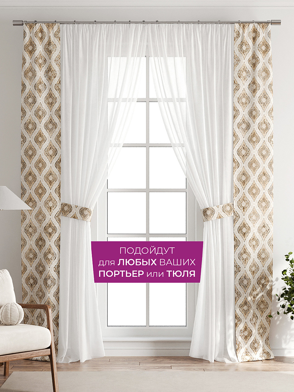 Декоративные подхваты 38х260 см — 2 шт. ( Изменить высоту) Крепление: шторная лента (крючки), кулиска Подробнее