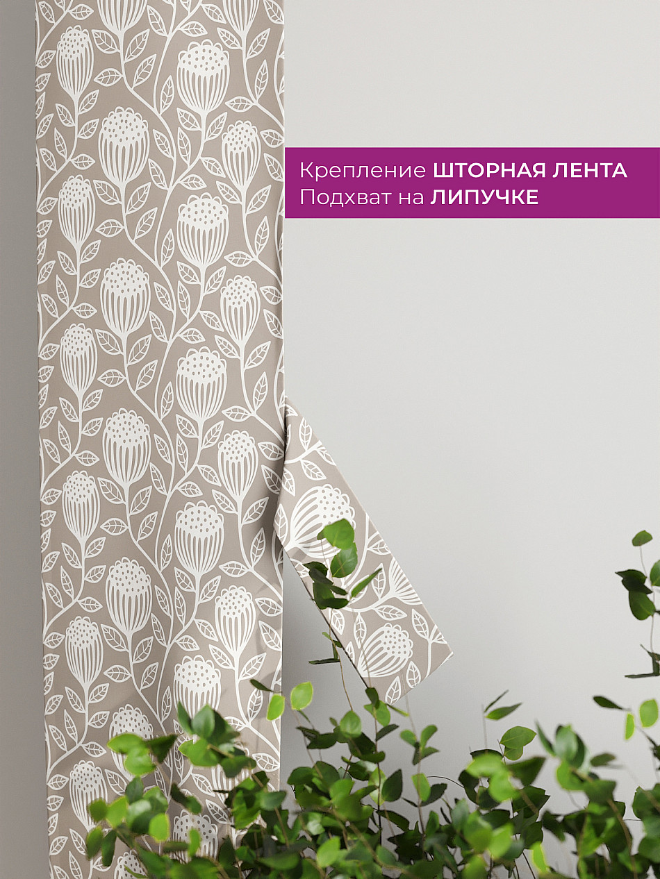 На высоте 125 см. пришит подхват (ширина 10 см.), который позволяет легко зафиксировать ваш тюль или шторы в нужном положении при помощи липучки.