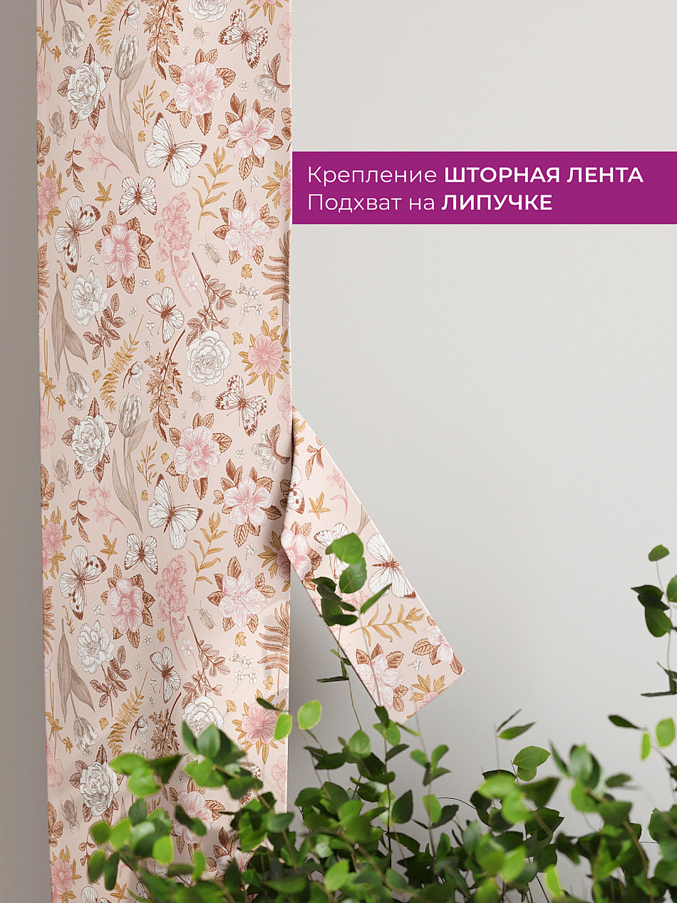 На высоте 125 см. пришит подхват (ширина 10 см.), который позволяет легко зафиксировать ваш тюль или шторы в нужном положении при помощи липучки.