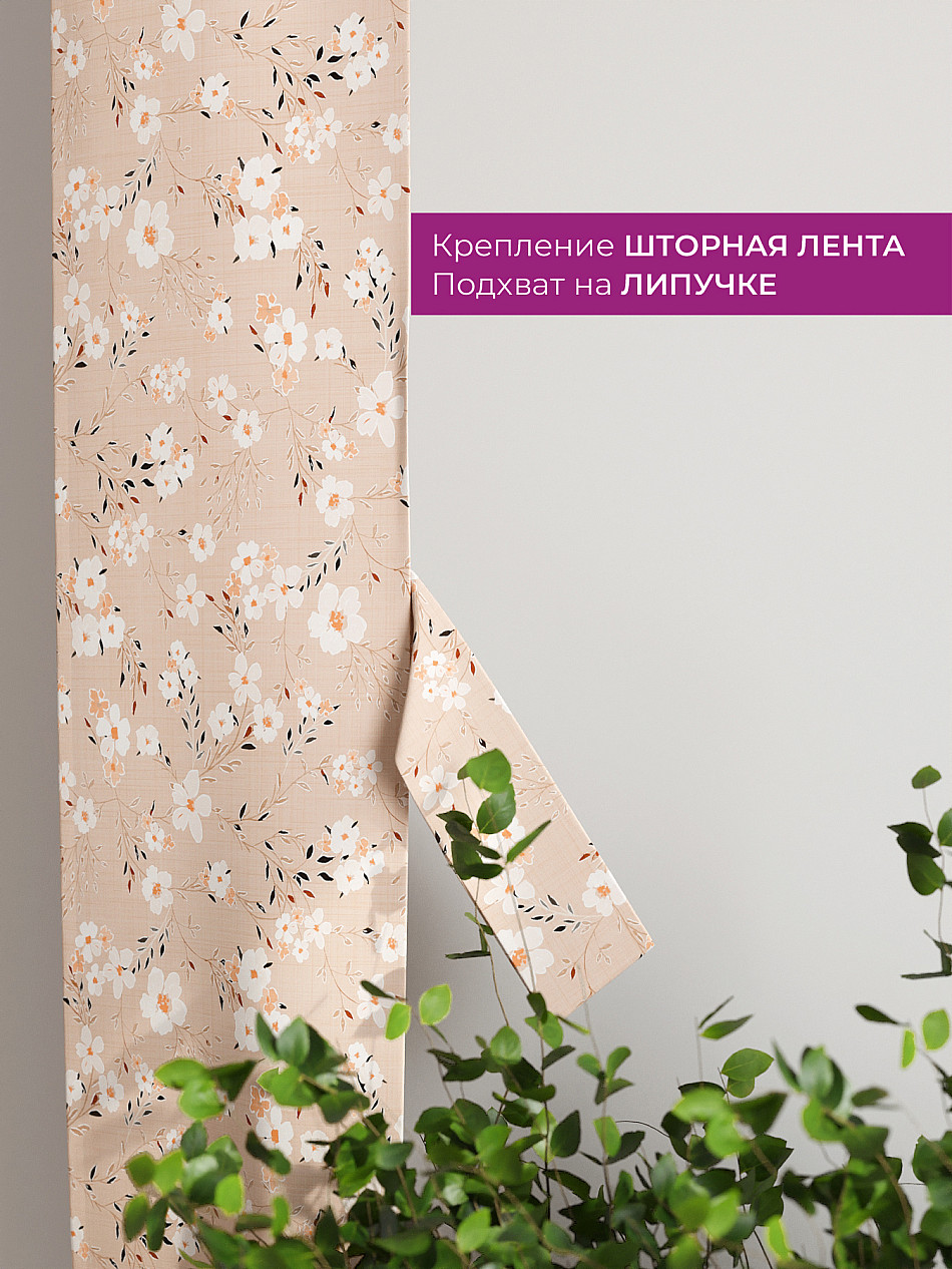 На высоте 125 см. пришит подхват (ширина 10 см.), который позволяет легко зафиксировать ваш тюль или шторы в нужном положении при помощи липучки.