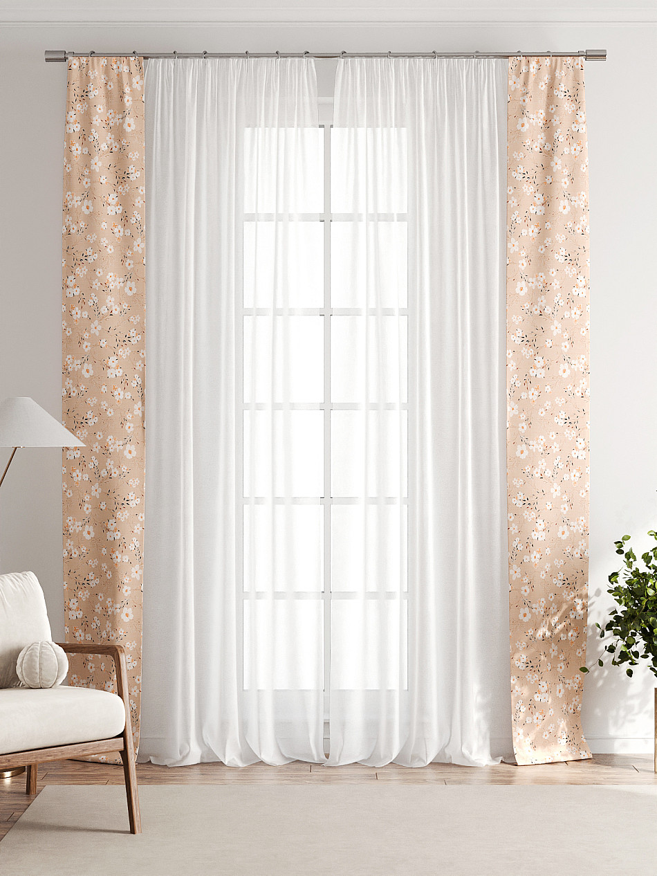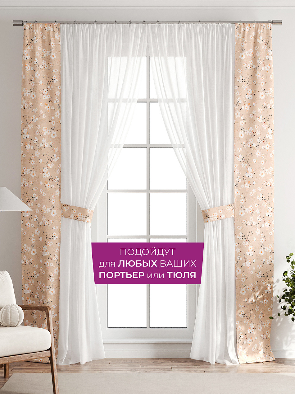 В комплект входят две узкие шторы шириной всего 38 см и длиной 260 см., которые навешиваются рядом с вашими занавесками или тюлем не утяжеляя вид окна и не препятствуя попаданию солнечного света в комнату. При этом выполняют роль подхватов и добавляют акцент в интерьер.
