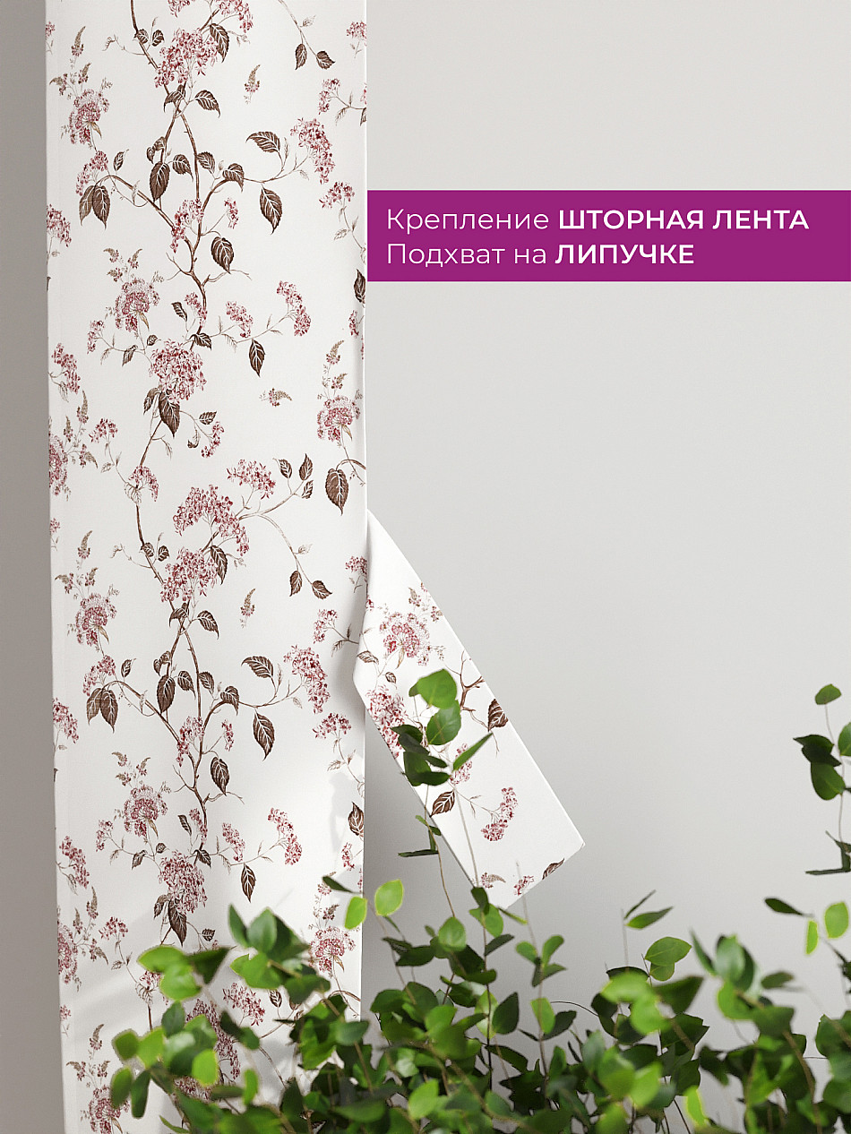 На высоте 125 см. пришит подхват (ширина 10 см.), который позволяет легко зафиксировать ваш тюль или шторы в нужном положении при помощи липучки.