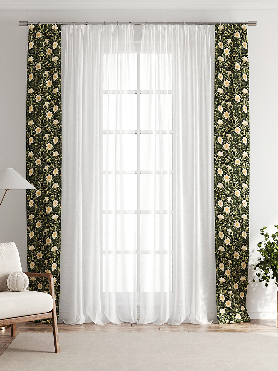 В комплект входят две узкие шторы шириной всего 38 см и длиной 260 см., которые навешиваются рядом с вашими занавесками или тюлем не утяжеляя вид окна и не препятствуя попаданию солнечного света в комнату. При этом выполняют роль подхватов и добавляют акцент в интерьер.