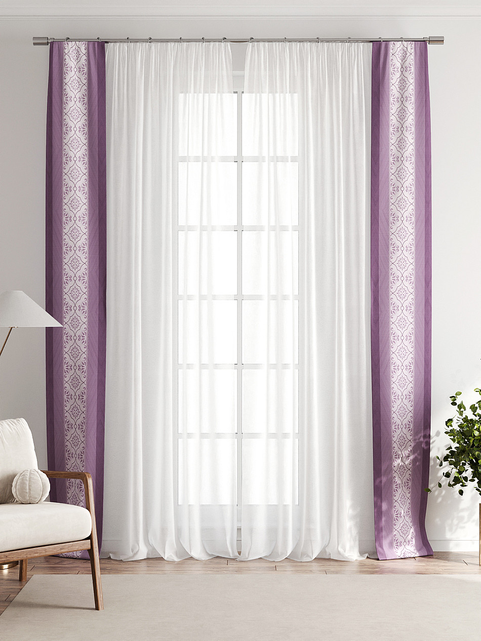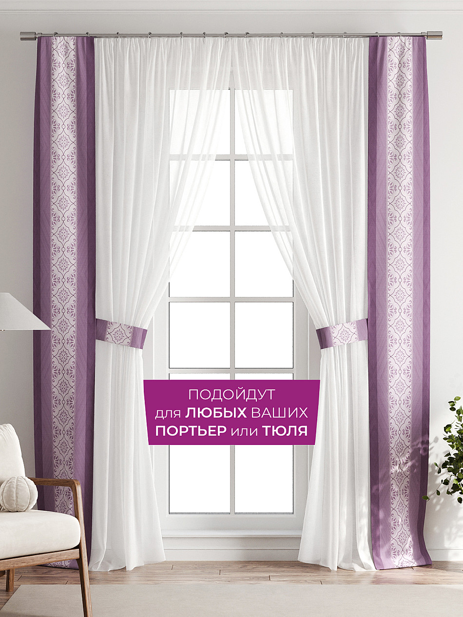 В комплект входят две узкие шторы шириной всего 38 см и длиной 260 см., которые навешиваются рядом с вашими занавесками или тюлем не утяжеляя вид окна и не препятствуя попаданию солнечного света в комнату. При этом выполняют роль подхватов и добавляют акцент в интерьер.