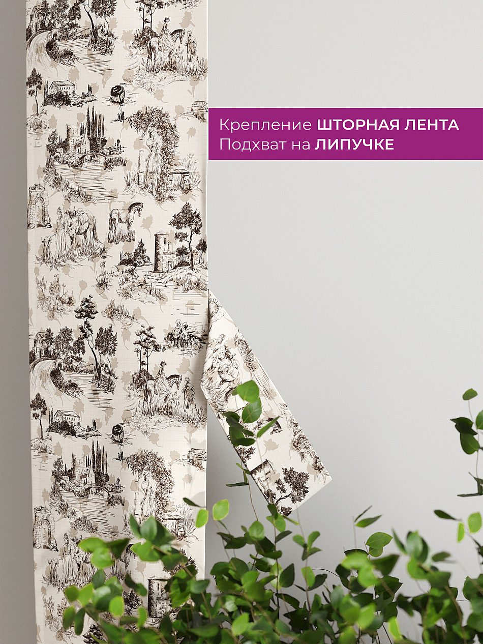 На высоте 125 см. пришит подхват (ширина 10 см.), который позволяет легко зафиксировать ваш тюль или шторы в нужном положении при помощи липучки.