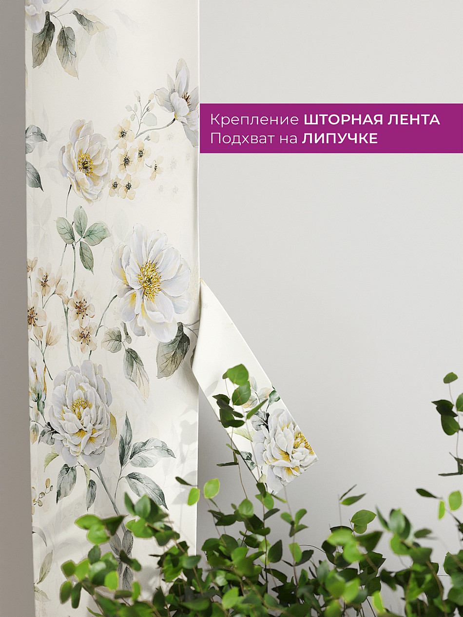 На высоте 125 см. пришит подхват (ширина 10 см.), который позволяет легко зафиксировать ваш тюль или шторы в нужном положении при помощи липучки.