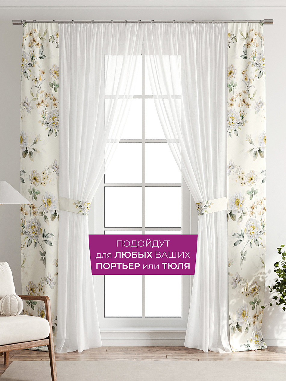 Панели с вшитыми подхватами подходят как для лёгкого тюля, так и для плотных портьер. Дополните тюль на кухне, шторы в гостиной, занавески в детской, портьеры в спальне и ваш интерьер заиграет новыми красками без серьезных вложений, а благодаря тому, что подхват пришит к нашим шторам - вам не нужно сверлить стены, устанавливать крючки или портить оконные рамы. Подхват всегда в нужном месте, не теряется, не смещается и обеспечивает аккуратную фиксацию.