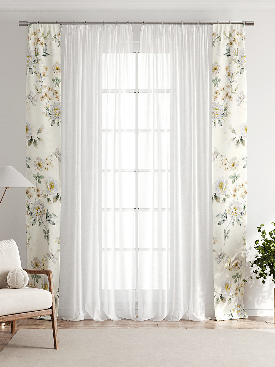 В комплект входят две узкие шторы шириной всего 38 см и длиной 260 см., которые навешиваются рядом с вашими занавесками или тюлем не утяжеляя вид окна и не препятствуя попаданию солнечного света в комнату. При этом выполняют роль подхватов и добавляют акцент в интерьер.