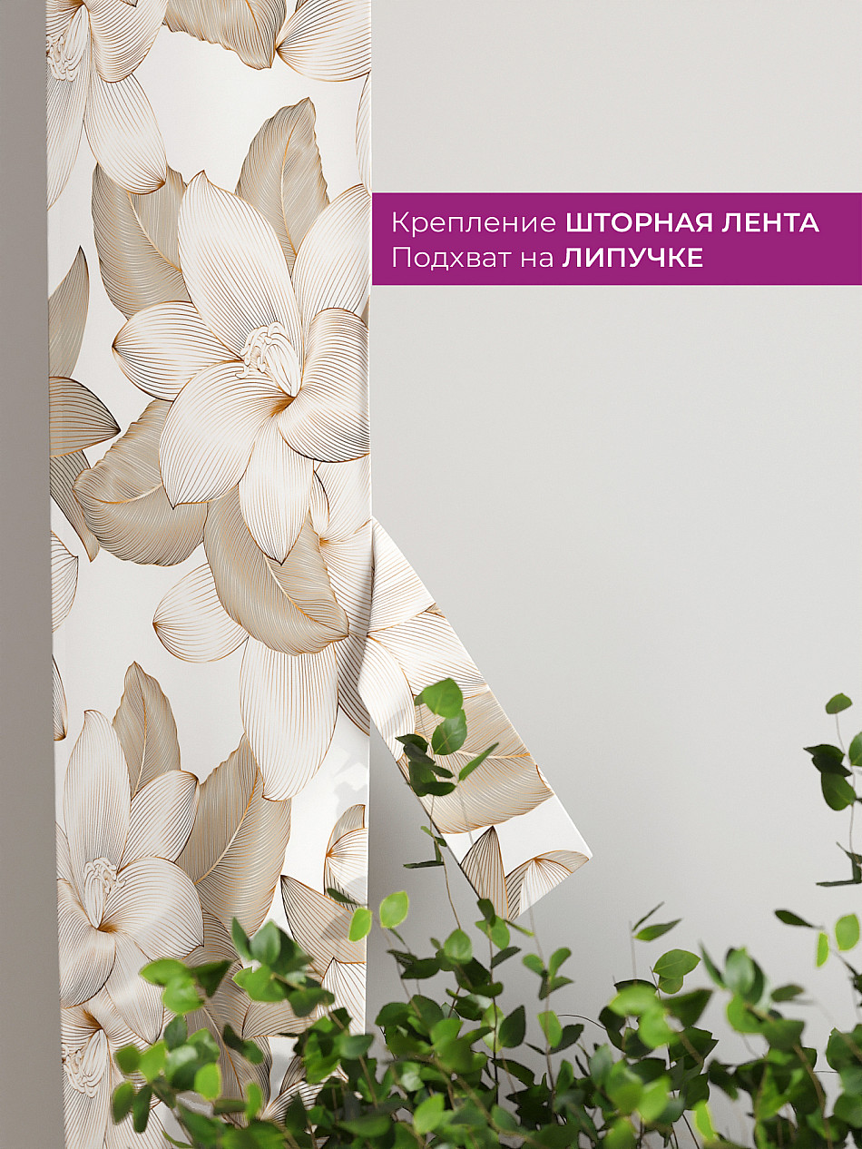 На высоте 125 см. пришит подхват (ширина 10 см.), который позволяет легко зафиксировать ваш тюль или шторы в нужном положении при помощи липучки.