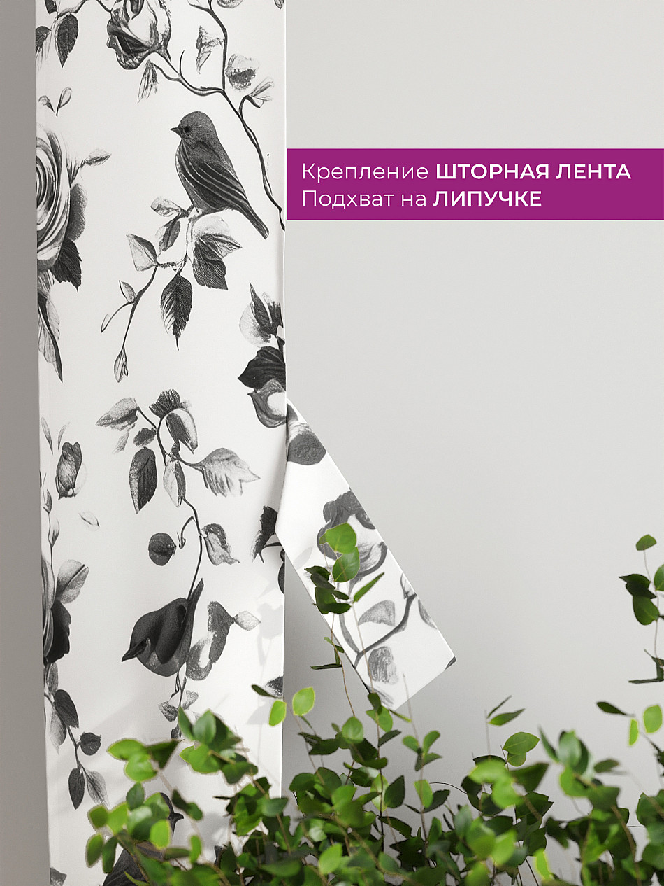 На высоте 125 см. пришит подхват (ширина 10 см.), который позволяет легко зафиксировать ваш тюль или шторы в нужном положении при помощи липучки.