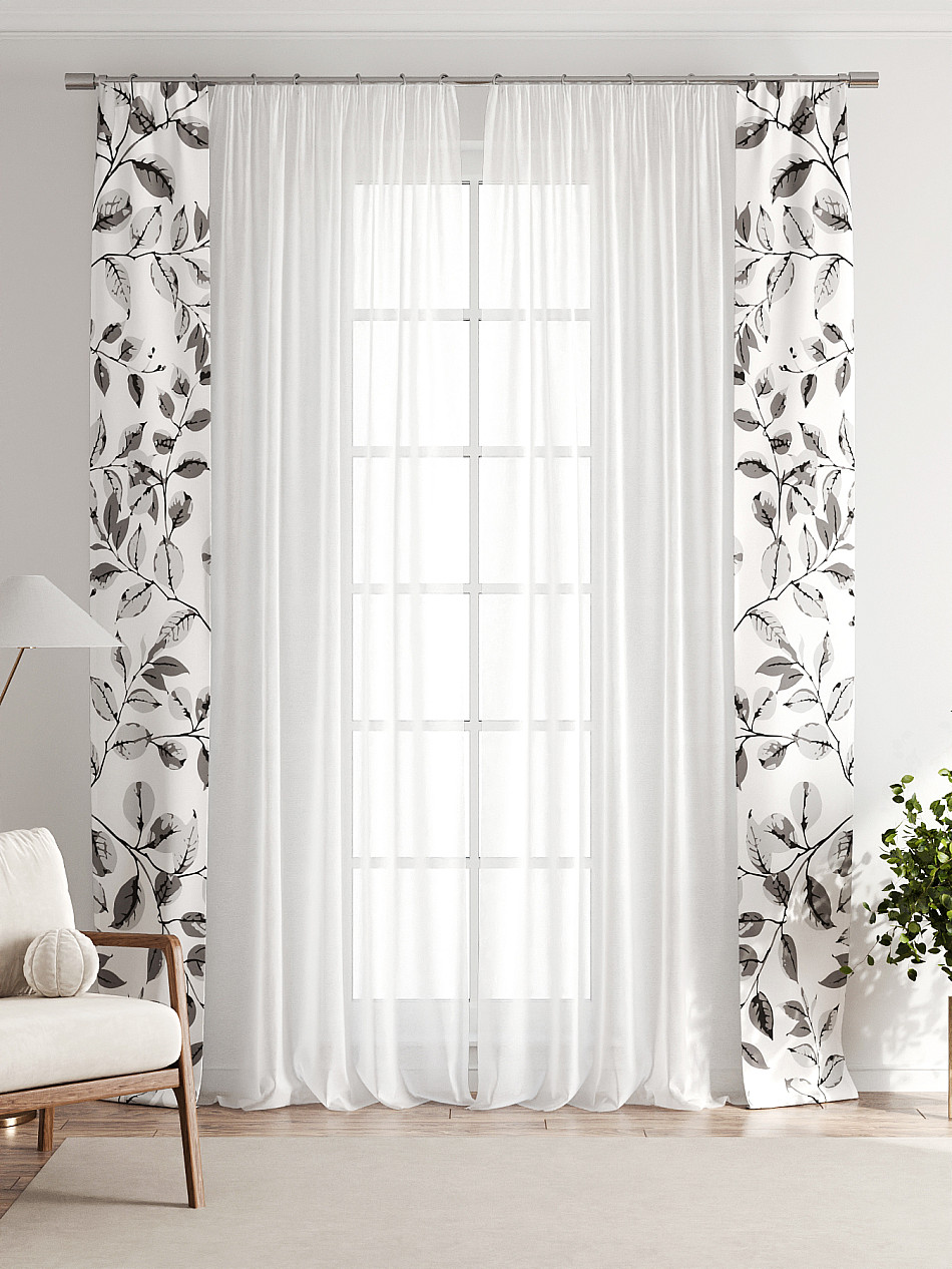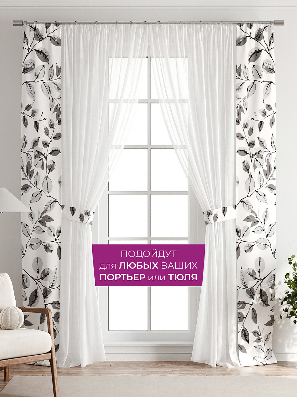 В комплект входят две узкие шторы шириной всего 38 см и длиной 260 см., которые навешиваются рядом с вашими занавесками или тюлем не утяжеляя вид окна и не препятствуя попаданию солнечного света в комнату. При этом выполняют роль подхватов и добавляют акцент в интерьер.