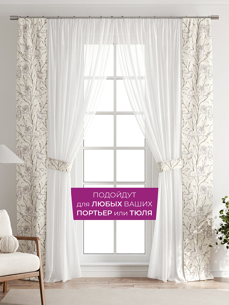 Панели с вшитыми подхватами подходят как для лёгкого тюля, так и для плотных портьер. Дополните тюль на кухне, шторы в гостиной, занавески в детской, портьеры в спальне и ваш интерьер заиграет новыми красками без серьезных вложений, а благодаря тому, что подхват пришит к нашим шторам - вам не нужно сверлить стены, устанавливать крючки или портить оконные рамы. Подхват всегда в нужном месте, не теряется, не смещается и обеспечивает аккуратную фиксацию.