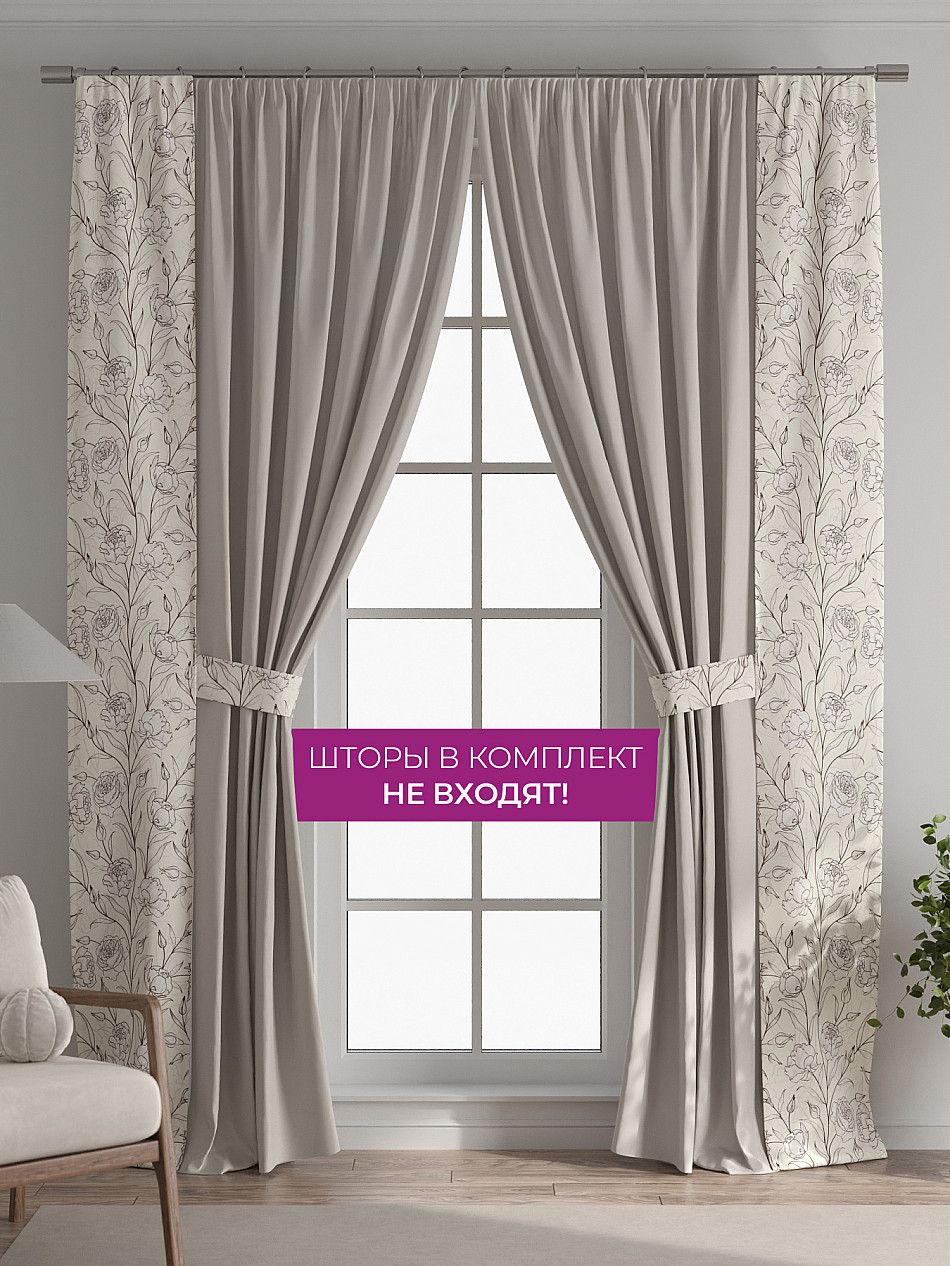 В комплект входят две узкие шторы шириной всего 38 см и длиной 260 см., которые навешиваются рядом с вашими занавесками или тюлем не утяжеляя вид окна и не препятствуя попаданию солнечного света в комнату. При этом выполняют роль подхватов и добавляют акцент в интерьер.