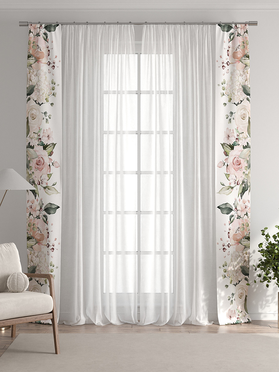 В комплект входят две узкие шторы шириной всего 38 см и длиной 260 см., которые навешиваются рядом с вашими занавесками или тюлем не утяжеляя вид окна и не препятствуя попаданию солнечного света в комнату. При этом выполняют роль подхватов и добавляют акцент в интерьер.
