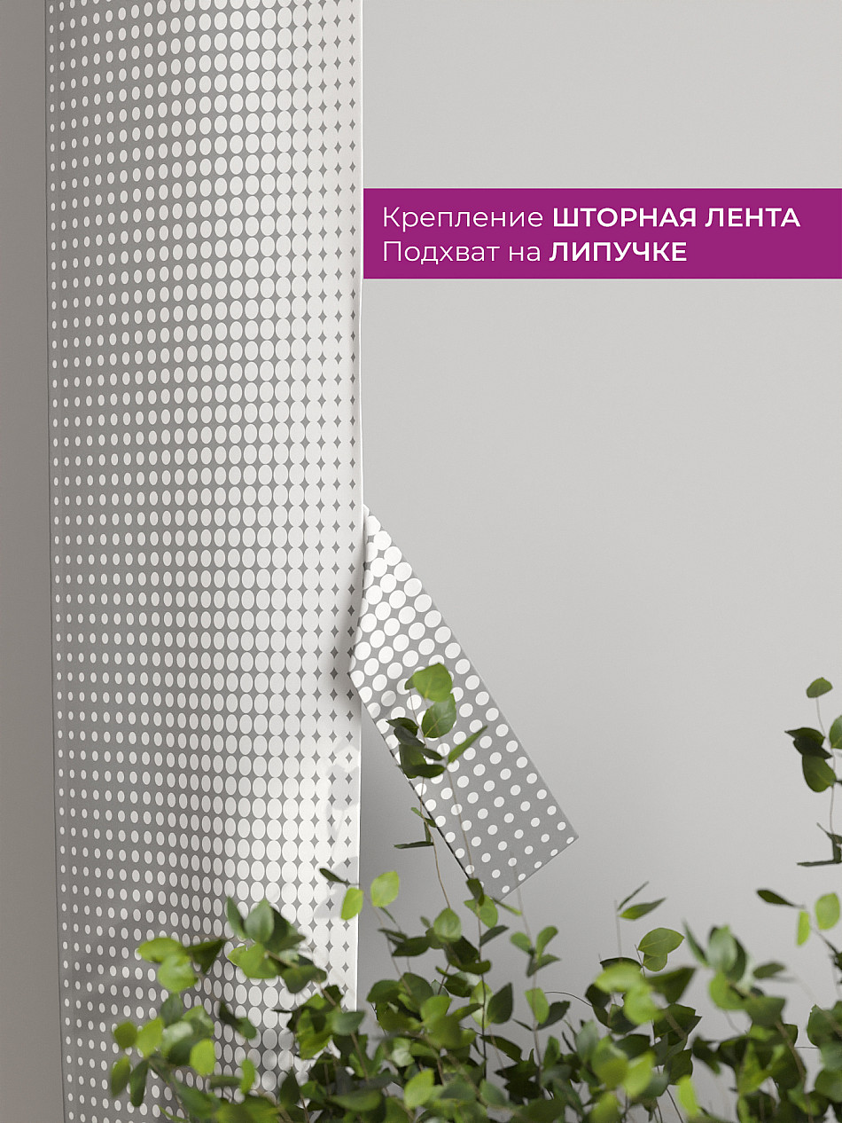 На высоте 125 см. пришит подхват (ширина 10 см.), который позволяет легко зафиксировать ваш тюль или шторы в нужном положении при помощи липучки.