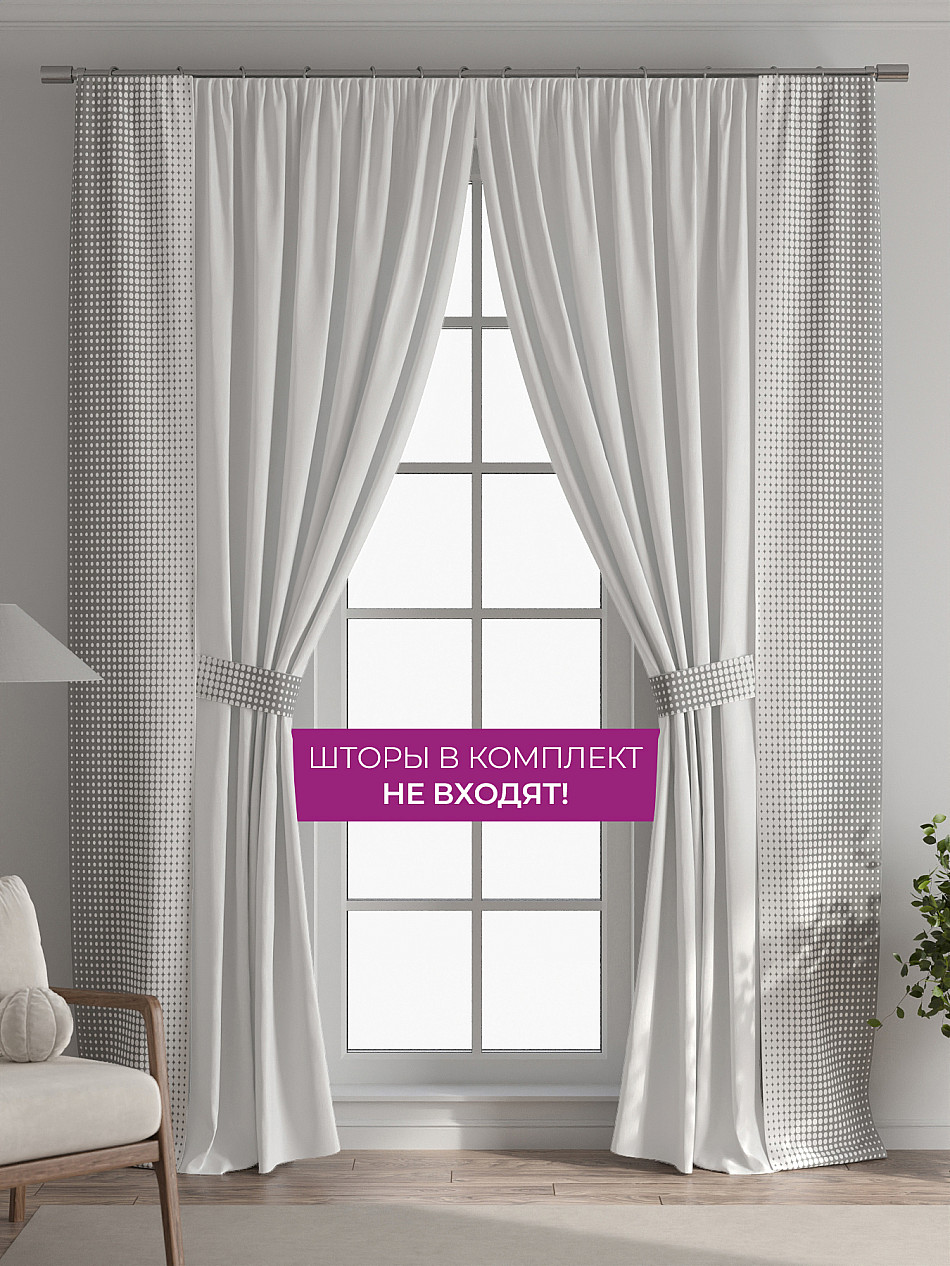 В комплект входят две узкие шторы шириной всего 38 см и длиной 260 см., которые навешиваются рядом с вашими занавесками или тюлем не утяжеляя вид окна и не препятствуя попаданию солнечного света в комнату. При этом выполняют роль подхватов и добавляют акцент в интерьер.