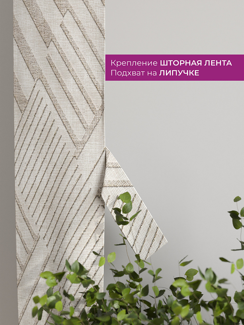 На высоте 125 см. пришит подхват (ширина 10 см.), который позволяет легко зафиксировать ваш тюль или шторы в нужном положении при помощи липучки.