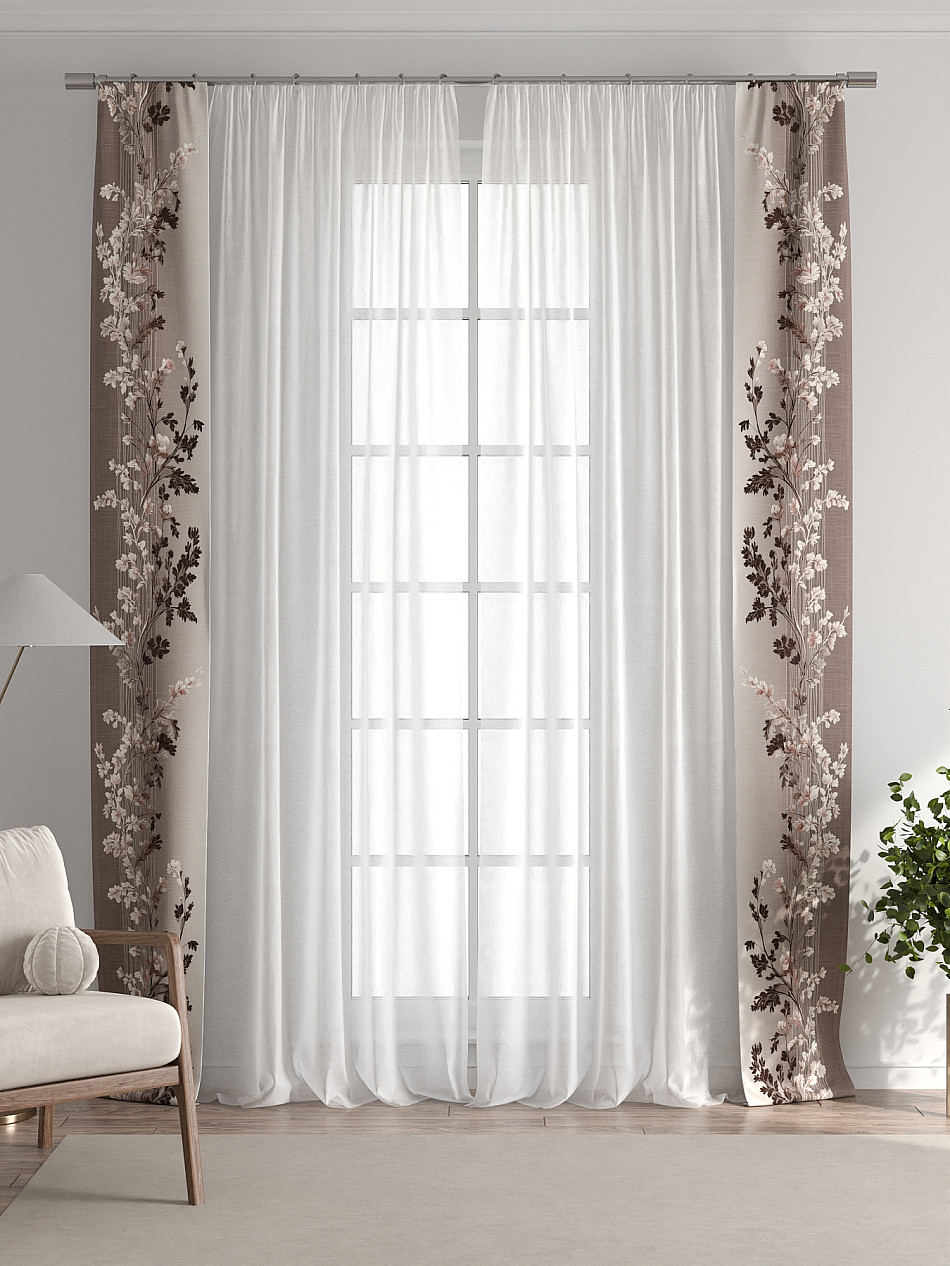 В комплект входят две узкие шторы шириной всего 38 см и длиной 260 см., которые навешиваются рядом с вашими занавесками или тюлем не утяжеляя вид окна и не препятствуя попаданию солнечного света в комнату. При этом выполняют роль подхватов и добавляют акцент в интерьер.