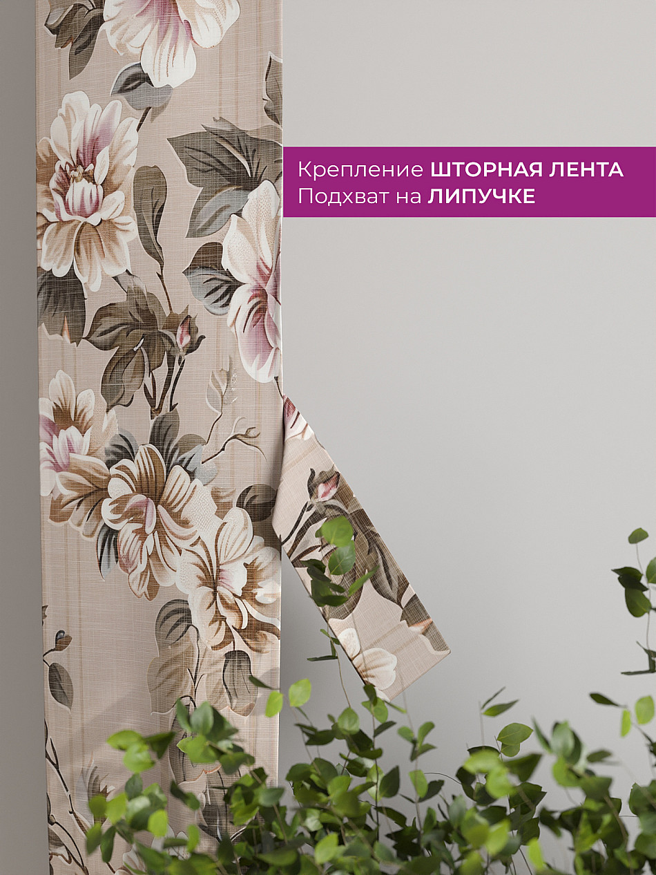 На высоте 125 см. пришит подхват (ширина 10 см.), который позволяет легко зафиксировать ваш тюль или шторы в нужном положении при помощи липучки.