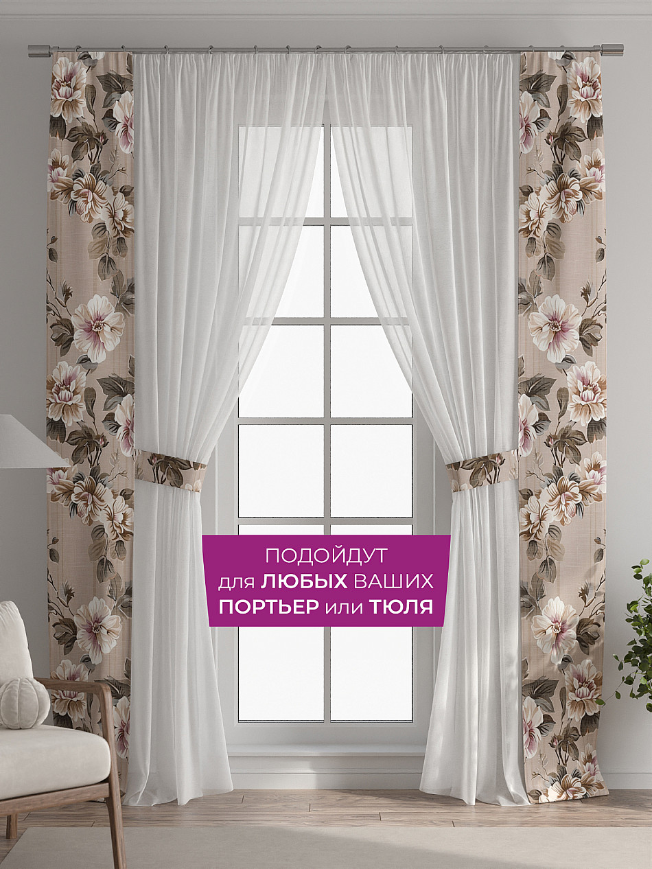 Панели с вшитыми подхватами подходят как для лёгкого тюля, так и для плотных портьер. Дополните тюль на кухне, шторы в гостиной, занавески в детской, портьеры в спальне и ваш интерьер заиграет новыми красками без серьезных вложений, а благодаря тому, что подхват пришит к нашим шторам - вам не нужно сверлить стены, устанавливать крючки или портить оконные рамы. Подхват всегда в нужном месте, не теряется, не смещается и обеспечивает аккуратную фиксацию.