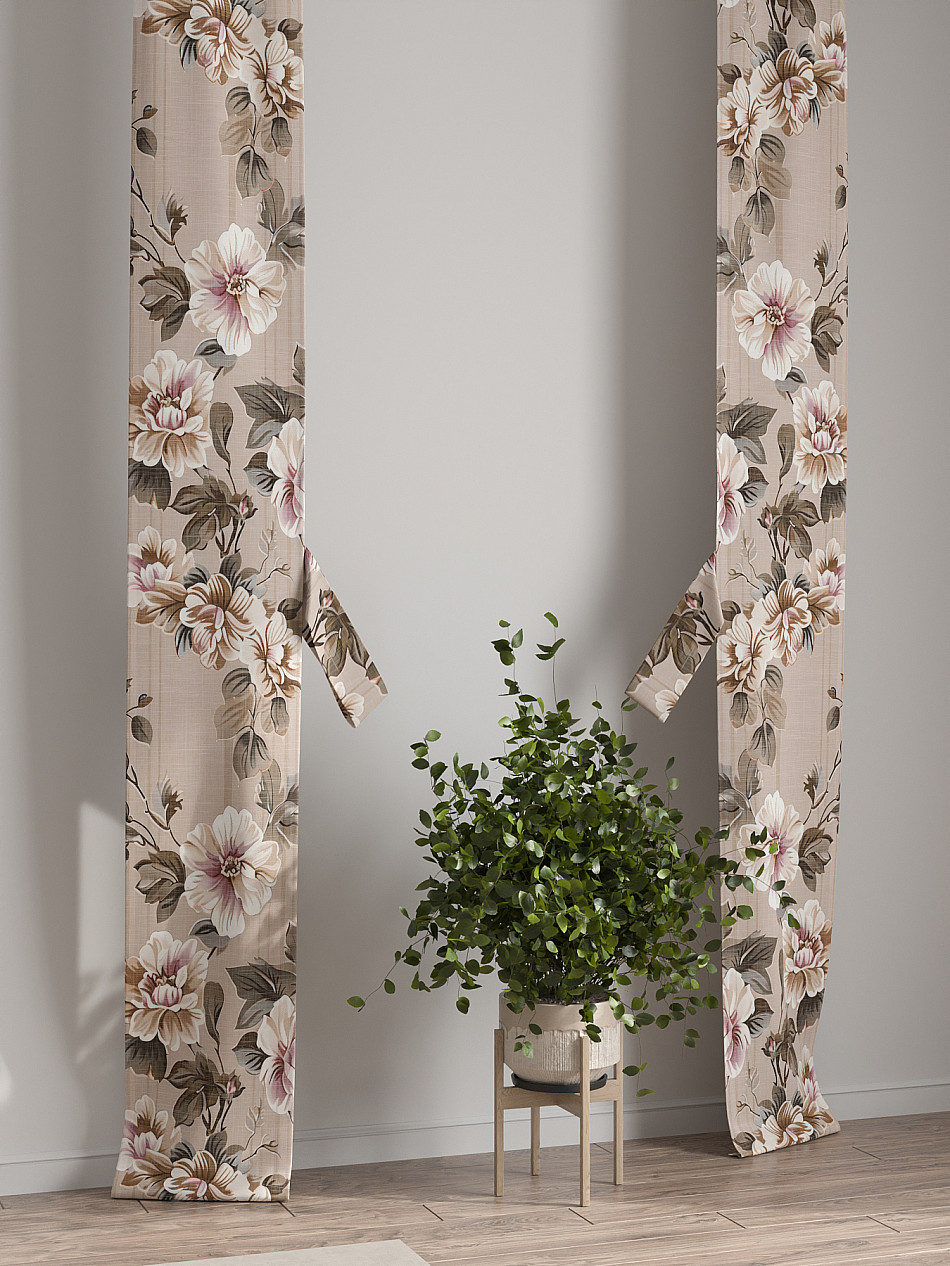 Комплект готов к развешиванию. По верхнему краю пристрочена шторная лента 6 см, с 2-мя рядами петель под крючки, что позволяет регулировать высоту. Одновременно имеется кулиска (карман для штанги), в которую можно продеть карниз любого диаметра.
