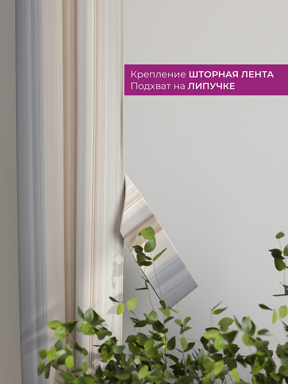 На высоте 125 см. пришит подхват (ширина 10 см.), который позволяет легко зафиксировать ваш тюль или шторы в нужном положении при помощи липучки.