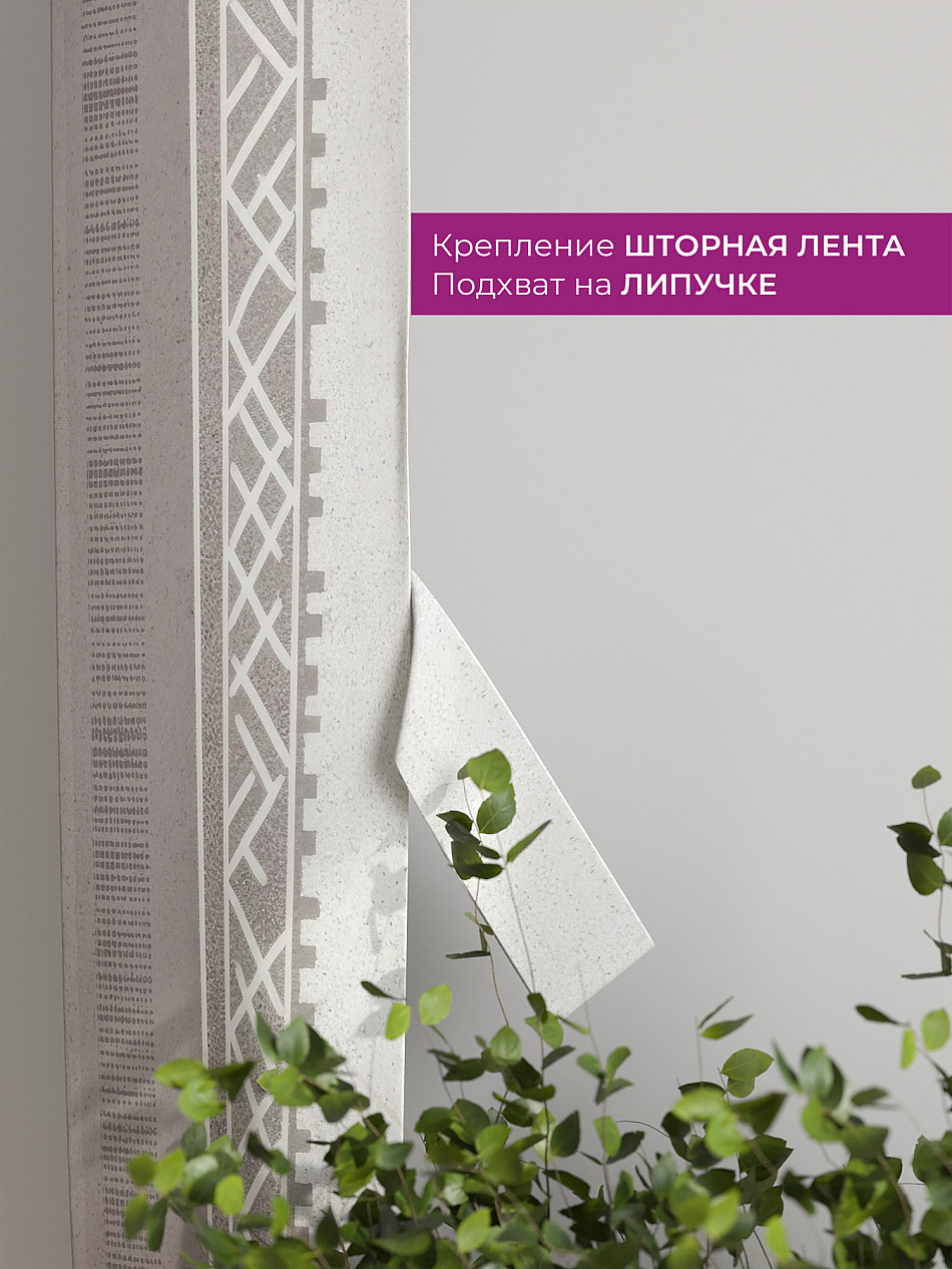 На высоте 125 см. пришит подхват (ширина 10 см.), который позволяет легко зафиксировать ваш тюль или шторы в нужном положении при помощи липучки.