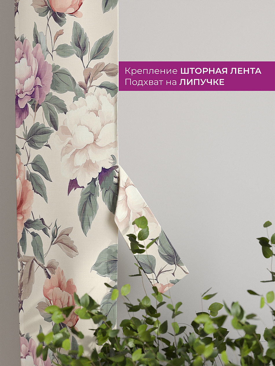 На высоте 125 см. пришит подхват (ширина 10 см.), который позволяет легко зафиксировать ваш тюль или шторы в нужном положении при помощи липучки.