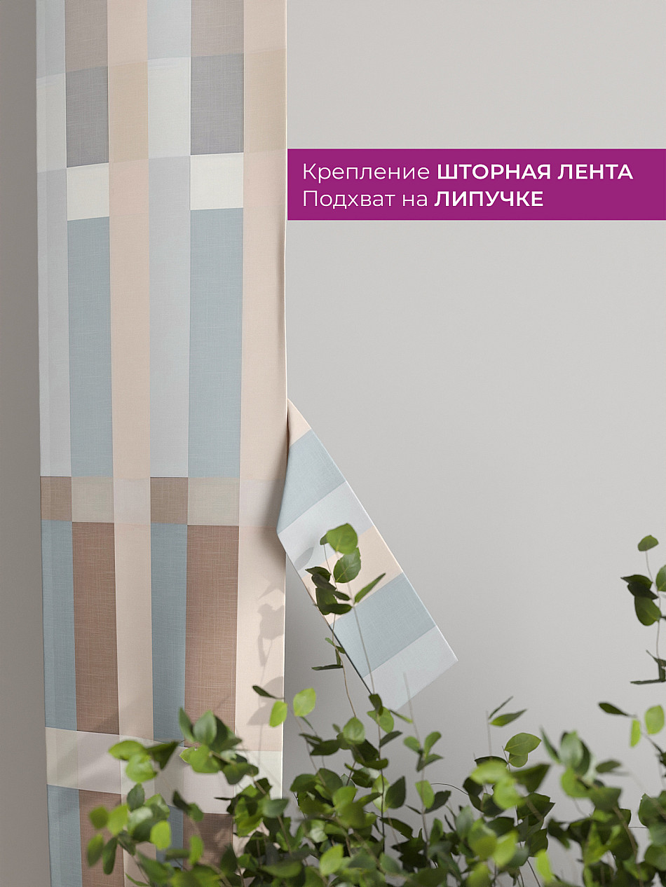 На высоте 125 см. пришит подхват (ширина 10 см.), который позволяет легко зафиксировать ваш тюль или шторы в нужном положении при помощи липучки.