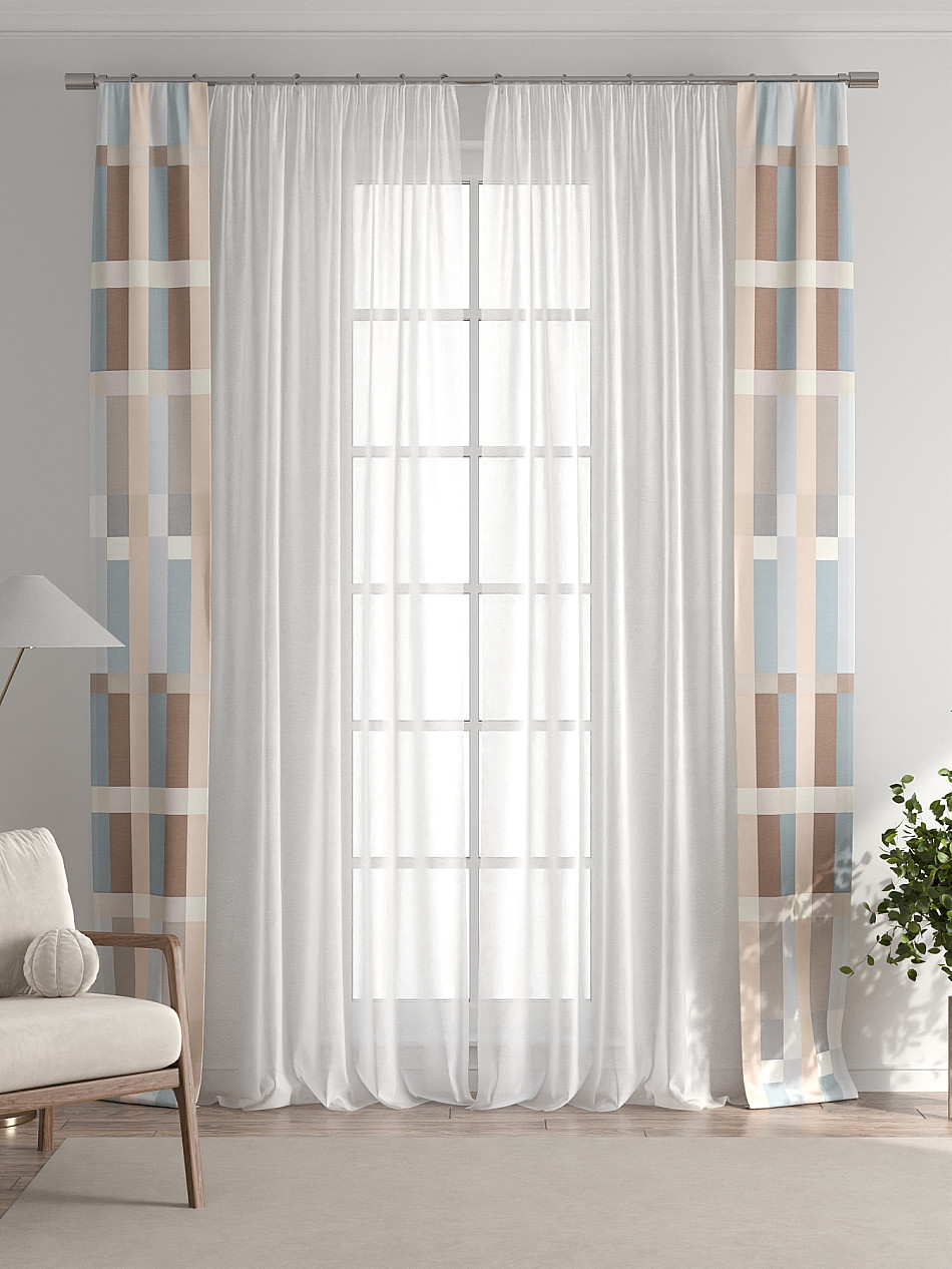 В комплект входят две узкие шторы шириной всего 38 см и длиной 260 см., которые навешиваются рядом с вашими занавесками или тюлем не утяжеляя вид окна и не препятствуя попаданию солнечного света в комнату. При этом выполняют роль подхватов и добавляют акцент в интерьер.