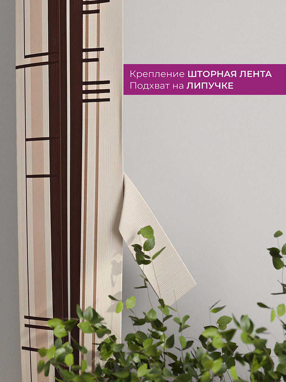 На высоте 125 см. пришит подхват (ширина 10 см.), который позволяет легко зафиксировать ваш тюль или шторы в нужном положении при помощи липучки.