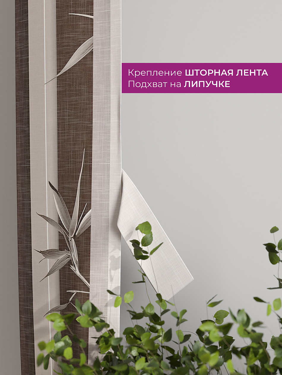На высоте 125 см. пришит подхват (ширина 10 см.), который позволяет легко зафиксировать ваш тюль или шторы в нужном положении при помощи липучки.