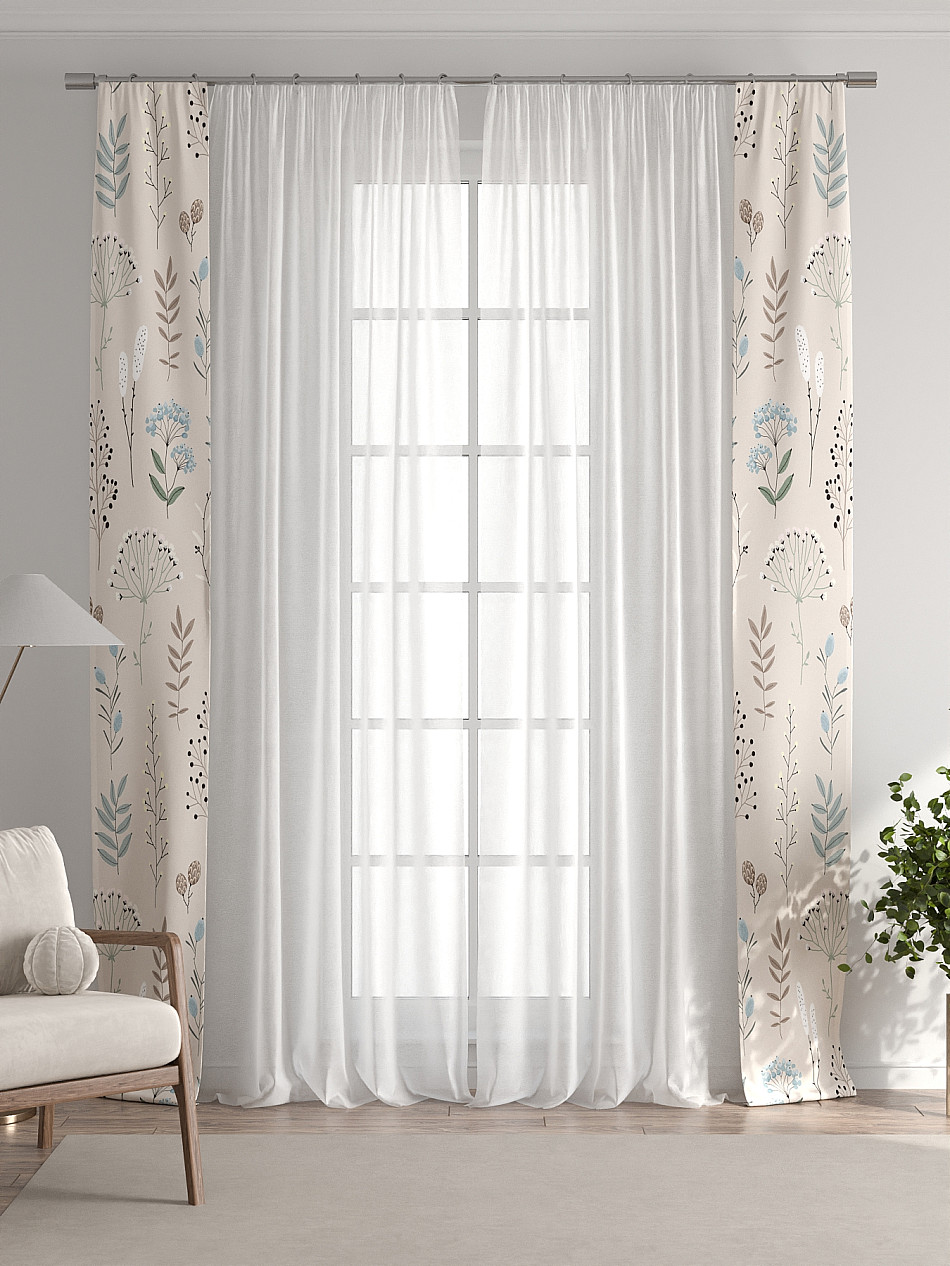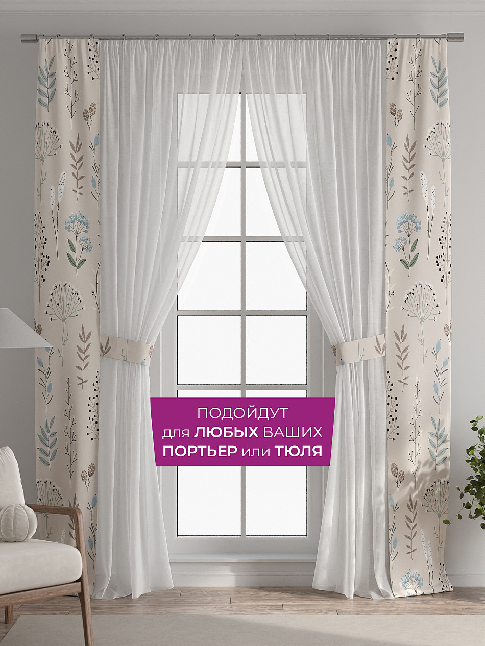 В комплект входят две узкие шторы шириной всего 38 см и длиной 260 см., которые навешиваются рядом с вашими занавесками или тюлем не утяжеляя вид окна и не препятствуя попаданию солнечного света в комнату. При этом выполняют роль подхватов и добавляют акцент в интерьер.