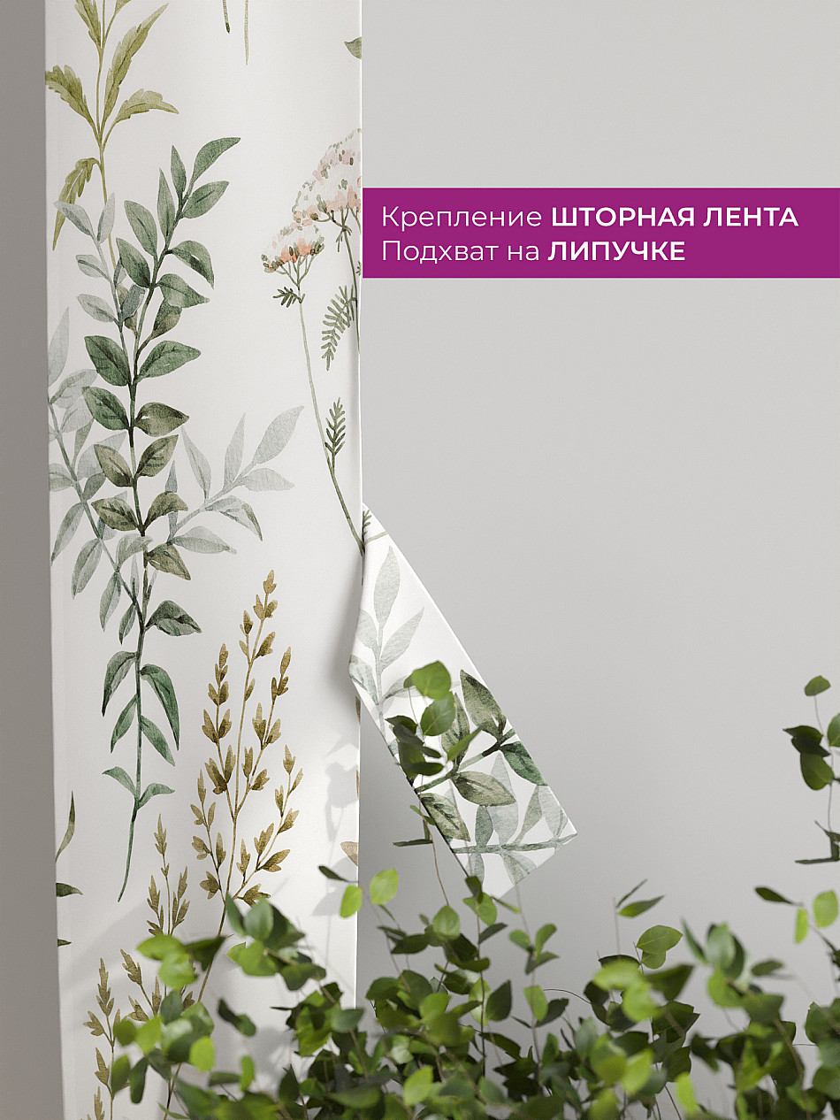 На высоте 125 см. пришит подхват (ширина 10 см.), который позволяет легко зафиксировать ваш тюль или шторы в нужном положении при помощи липучки.