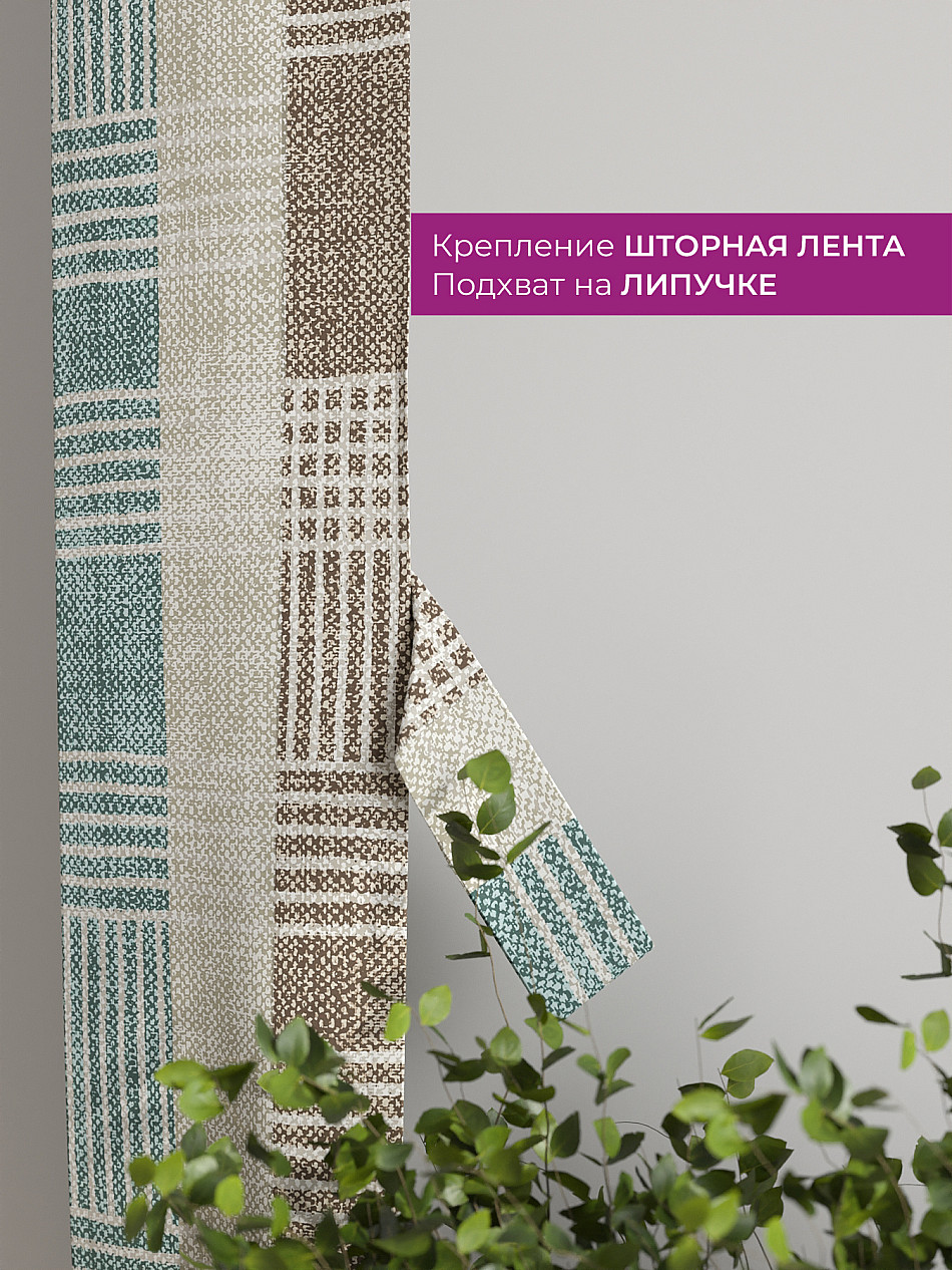 На высоте 125 см. пришит подхват (ширина 10 см.), который позволяет легко зафиксировать ваш тюль или шторы в нужном положении при помощи липучки.