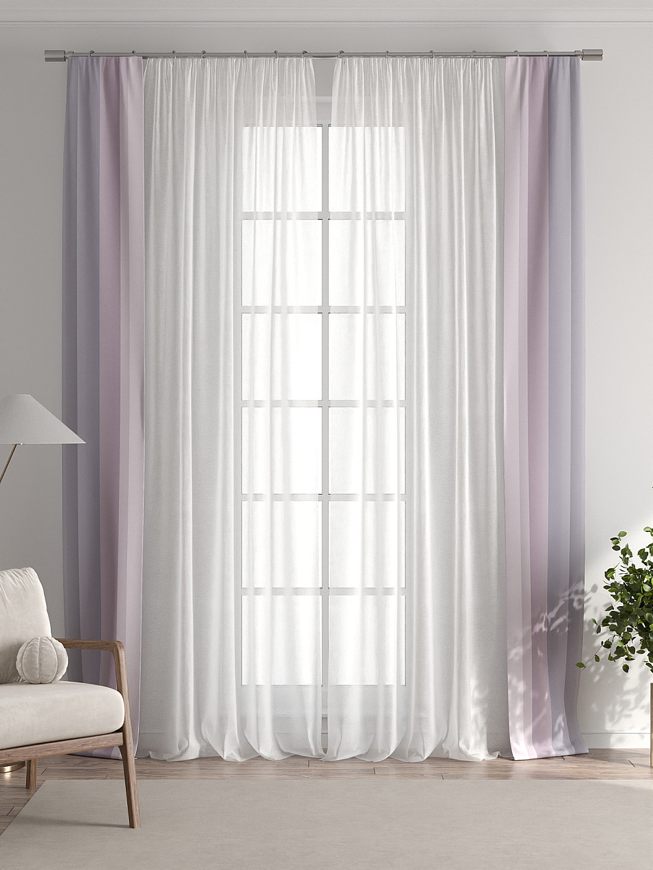 В комплект входят две узкие шторы шириной всего 38 см и длиной 260 см., которые навешиваются рядом с вашими занавесками или тюлем не утяжеляя вид окна и не препятствуя попаданию солнечного света в комнату. При этом выполняют роль подхватов и добавляют акцент в интерьер.