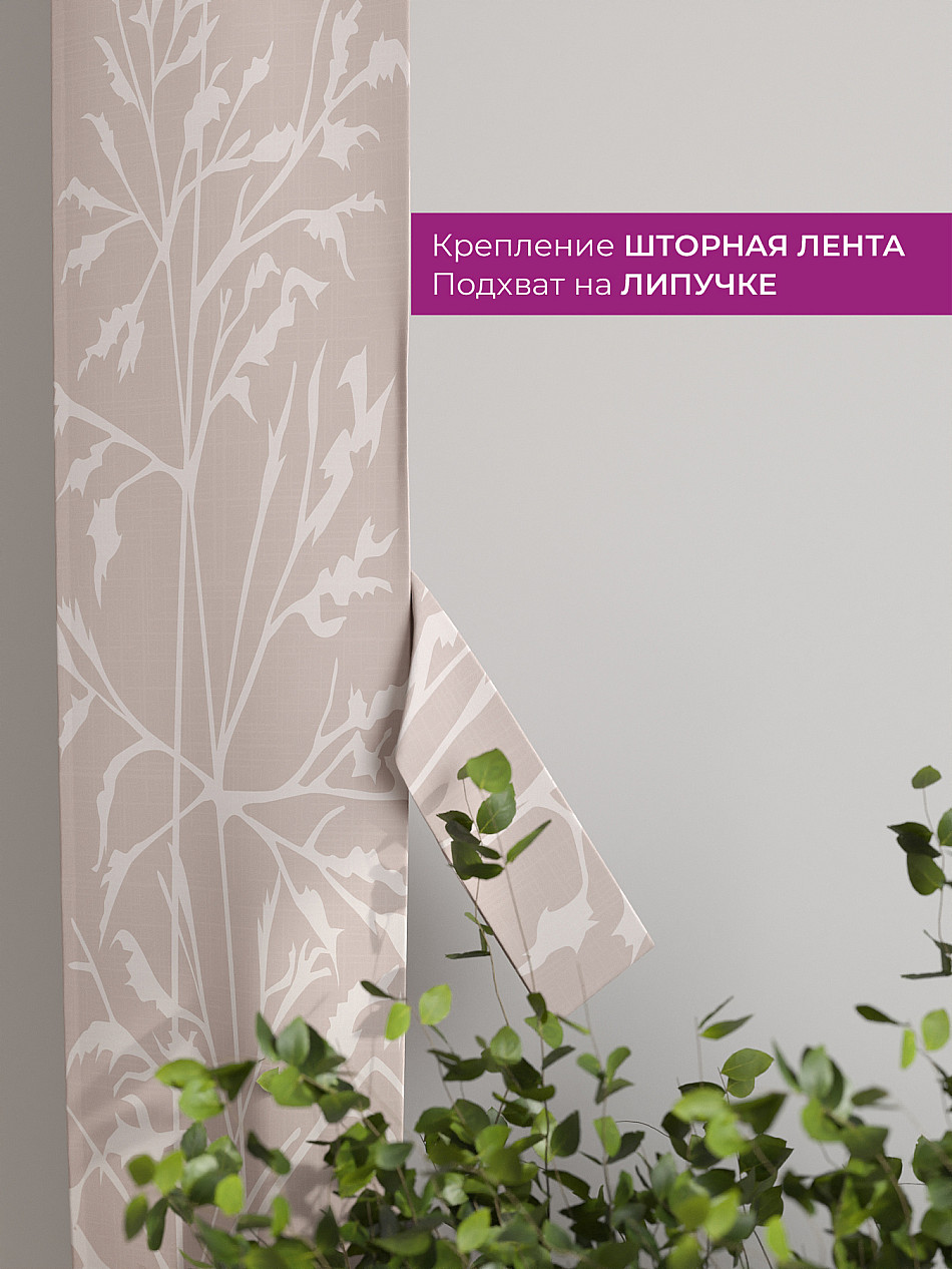 На высоте 125 см. пришит подхват (ширина 10 см.), который позволяет легко зафиксировать ваш тюль или шторы в нужном положении при помощи липучки.